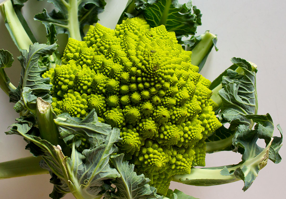 Der Romanesco Broccoli ist eines der wenigen Gemüse, das streng mathematisch mit Fraktalen und Fibonacci-Spiralen wächst.