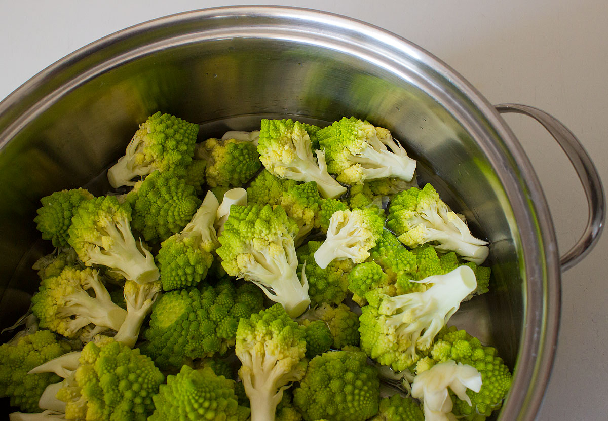 In Salzwasser gedünstet und mit Eiswasser abgeschreckt behält der Romanesco seine schöne grüne Farbe. Mit wenig Fett in Semmelbröseln gewälzt und mit Pfeffer und Knoblauch gewürzt ein gesundes Winteressen.