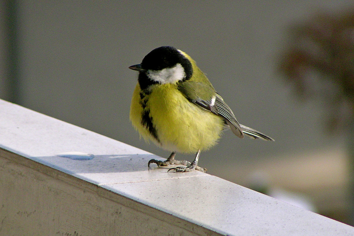 Hallo im Forum! Gedanken einer Meise auf dem Winterbalkon: