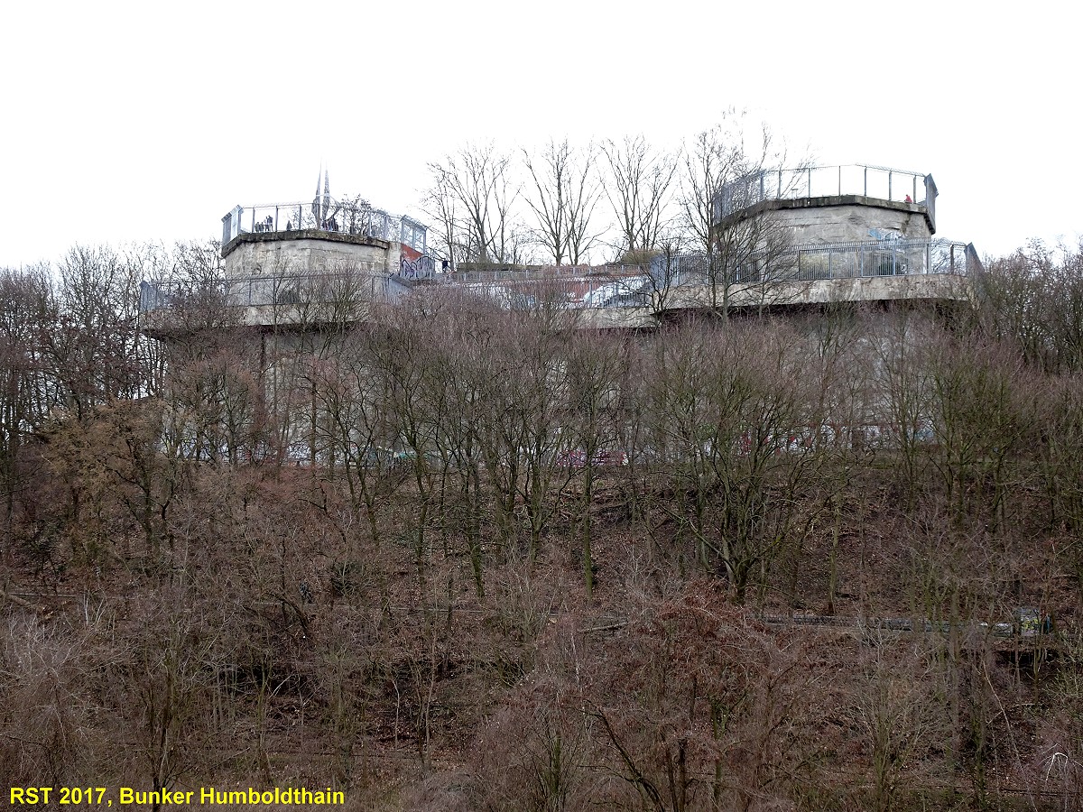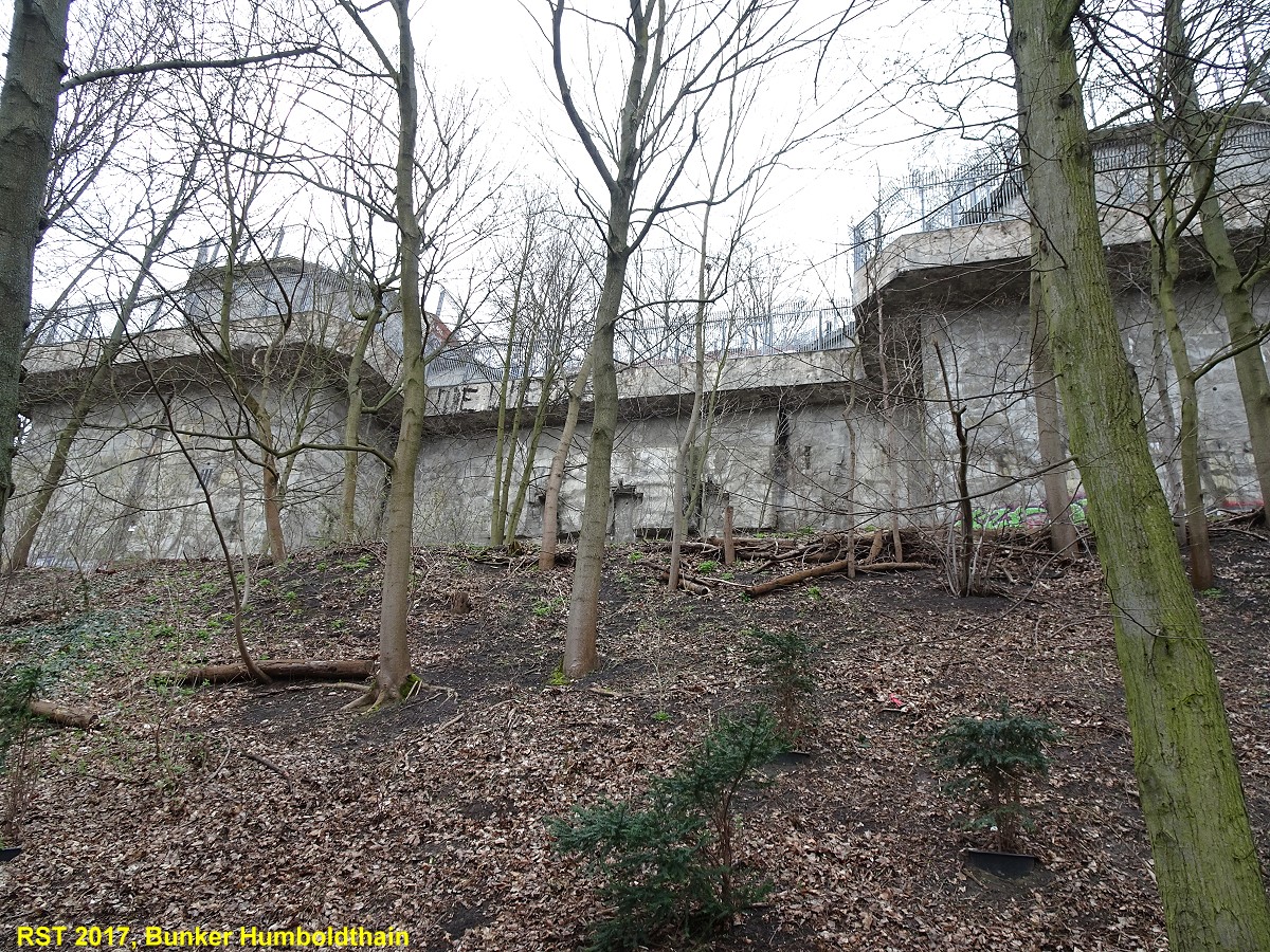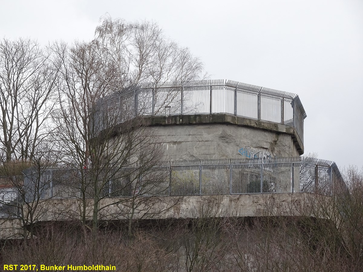 angeregt durch die Fotos des Hochbunkers in Wien von Willi, habe ich mir meine kleine Reisekamera Sony DSC-HX90 geschnappt und bin nach Berelin Gesundbrunnen gefahren. Dort auf der Fläche des Humboldthains (einer recht großen Parkanlage) befinden sich die Überreste des ehemaligen Hochbunkers und Flakturms. Der Bunker wurde nur zur Hälfte gesprengt und dann mit Kriegsbuschutt und Sand aufgeschrägt und schließlich bepflanzt. Der so entstandene Berg kann bestiegen werden. Von oben hat man einen guten Rundblick über Berlin. Ich selbst hatte als Jugendlicher mal mit Anderen heimlich den Bunker über Kriechgänge aufgesucht und leicht vergruselt dort eine Art Expedition durchgeführt.