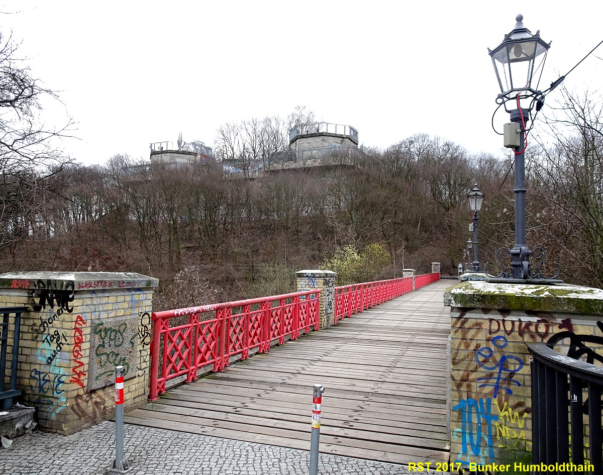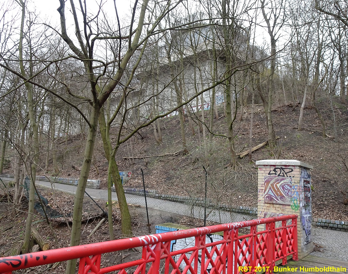 Hier ist die nahe Bahnanlage der Berliner S-Bahn und der Fernbahn zu sehen. Mit ein Grund warum diese Bunkerhälfte nicht gesprengt werden konnte.
