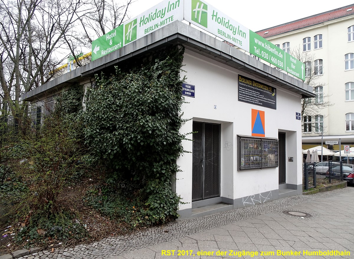 Es gibt in der Badstr. (ca. 400 Meter vom Bunker entfernt) zwei der vielen Zugänge zum Bunker, die wohl auch gleichzeitig Notausstiege der U-Bahn-Linie sind.