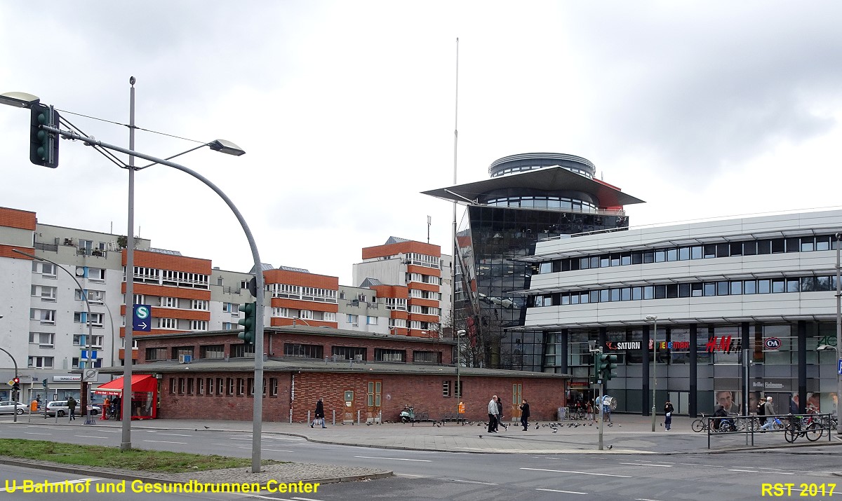 im Berliner Stadtteil Gesundbrunnen gibt es an der Bad-Straße / Ecke Behmstr. zwei Bahnhöfe: U-Bahn und S-Bahn und Fernbahn Gesundbrunnen und eine Haltestelle für div. Bus-Linien. Weiter ist hier eines der heute typischen Einkaufs-Center zu finden.