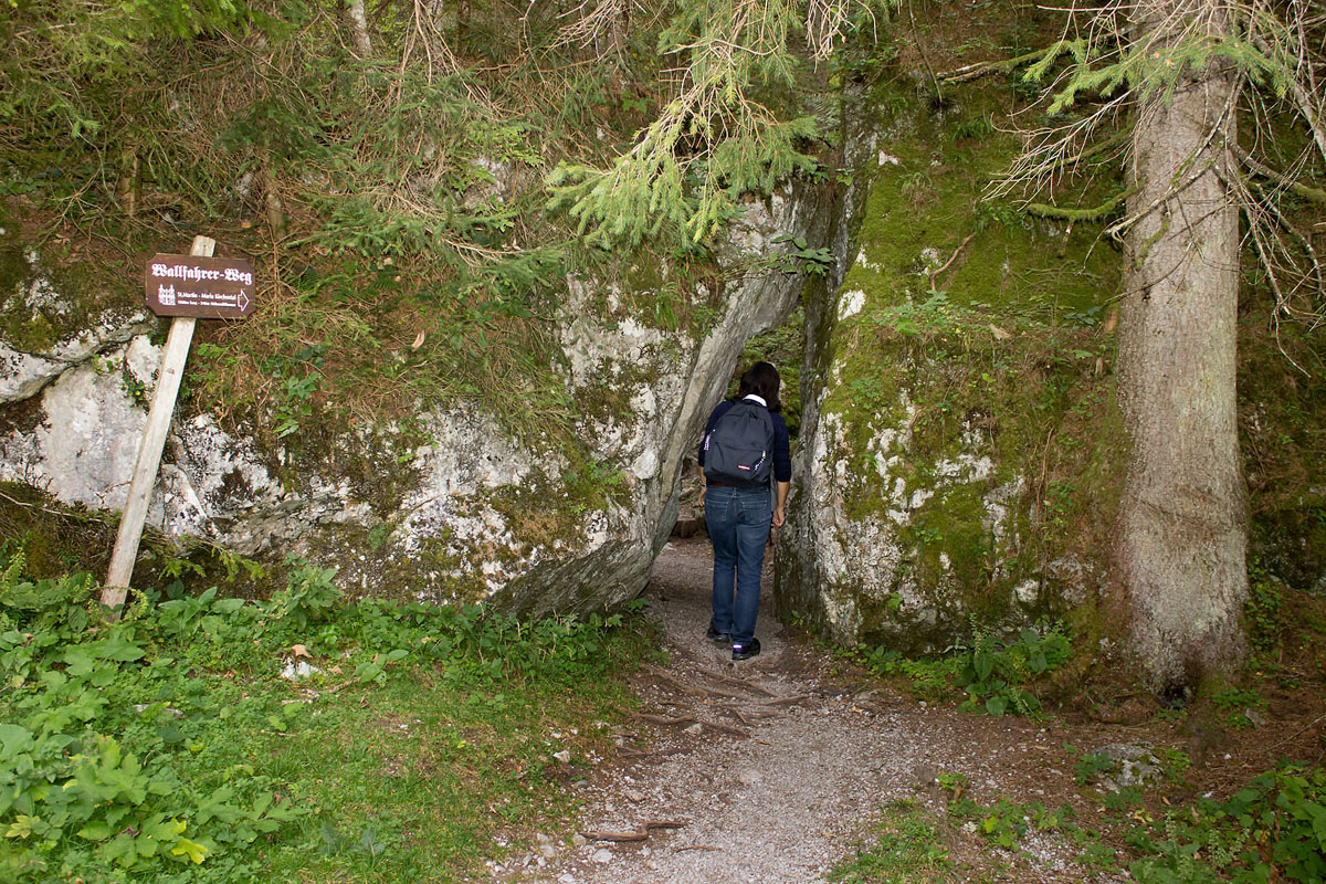 Zum Größenvergleich zwei Wanderer in der Lavawand