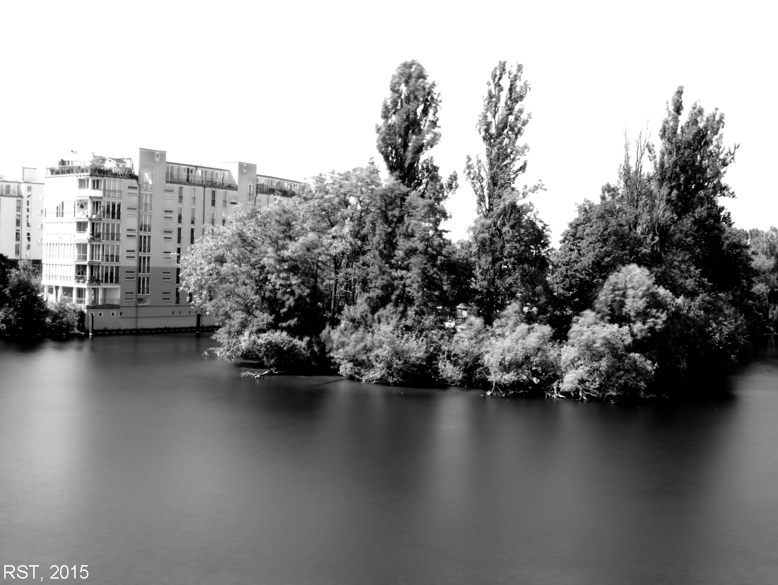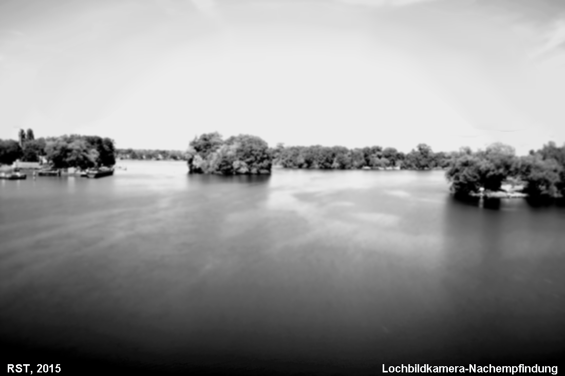 Es kam mir darauf an, mit einer "normalen" Kamera mit "normalen" Objektiv eine Lochkamera-Nachempfindung zu generieren. Es ist eben nur eine Nachempfindung, mehr nicht. Bei meinen Versuchen wollte ich insbesondere die Wasserflächen "ruhig" bekommen. Das geht bei 20 Sekunden schon ganz gut, aber bei der folgenden Aufnahme waren 20 Sekunden schon zu schnell. Allerdings war das Wasser durch Sportboote sehr aufgewühlt. Es war schwer, eine 20 Sek. - Lücke zwischen den Booten hinzubekommen.