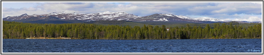 Auf dem Rückweg hab ich mal schnell ein digitales Bild für euch geschossen. Ein weiteres "Gesicht" dieser Gegend. Auf dem Foto seht ihr das Gebirge Ånnfjäll, aufgenommen über den Funäsdalssee beim Touristenort Funäsdalen. Ein sog. Stitch, zusammengefügt aus fünf Einzelbildern mittels Photoshop CS5.