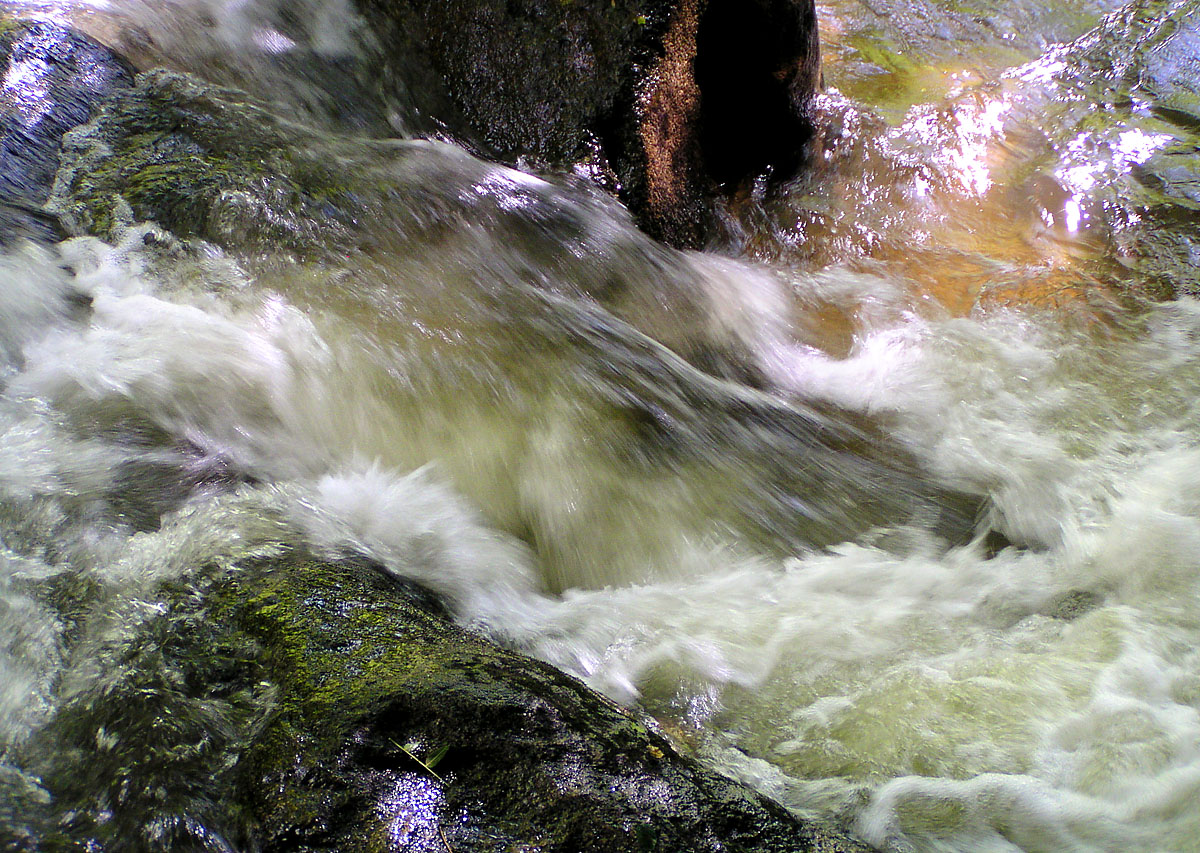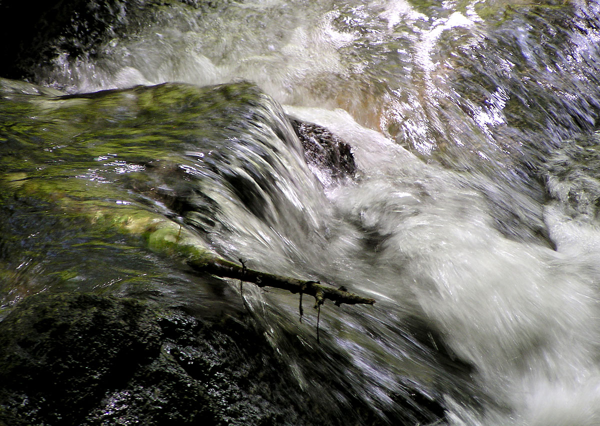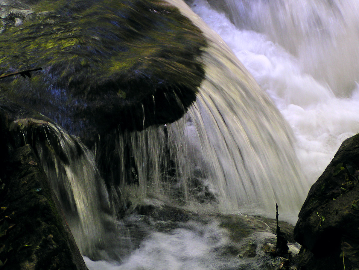 Der Versuch das Fließen des Wassers dazustellen ohne es zu weißem Nebel zu verwischen war mit Belichtungszeiten um 1/30 sek. am erfolgreichsten. Alle drei Fotos: Olympus C 730 UZ, ISO 64, 1/20 - 1/40 sek