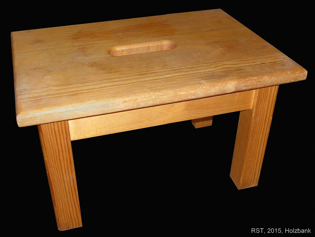 unscheinbar, aber viel in der Wohnung benutzt: Ein Holzbänkchen oder besser ein Holztritt. Vor 20 Jahren auf einem Weihnachtsmarkt des Johannes-Stifts in Berlin Spandau für wenig Geld erworben, ist es im Haushalt unverzichtbar geworden. Ob als Tritt zum Staubwischen oder Efeu-Gießen auf hohen Schränken oder beim Justieren der Impedanzanpassung der Amateurfunkantenne auf dem Balkon oder als temporärer Blumenständer, das Bänkchen musste schon viel (wörtlich) ertragen. Man sieht es dem Bänkchen (leider) auch schon an. Aber - wie schon gesagt - unverzichtbar.