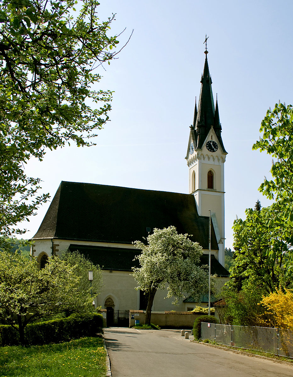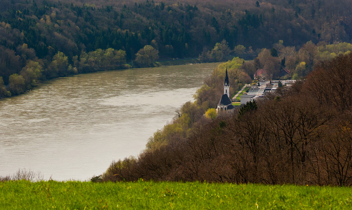 Die Kirche am Donauufer wurde erstmals in einer Urkunde aus dem Jahr 827 erwähnt. Der heutige Bau stammt aus der Zeit um 1450. Canon EF 90-300mm