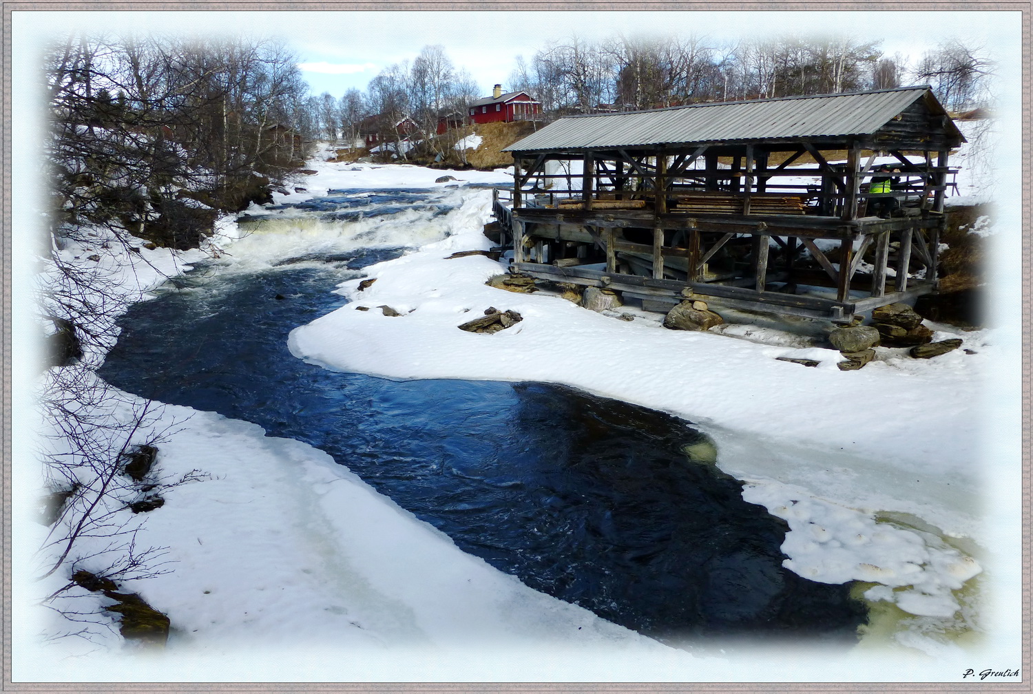 hier mal wieder was aus der schwedischen Provinz. Ein altes, wassergetriebenes Sägewerk im Dorf Ljusnedal in Härjedalen. Der Frühling ist nahe. Das Eis auf dem Fluss Ljusnan bricht auf.