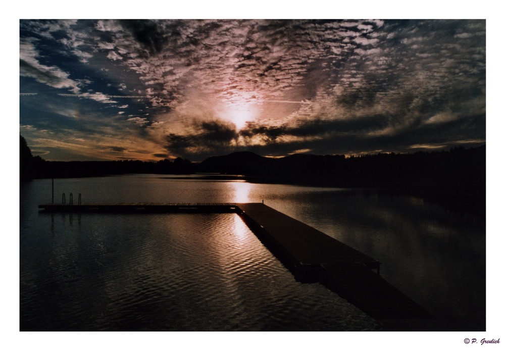 hier mal eine Aufnahme vom Sommer 2004. Ich weiß das präzise, da ich in diesem Jahr eine Saison lang an der Rezeption eines Campingplatzes gearbeitet hatte. Eines Campingplatzes, der an den Badeplatz des schwedischen Dorfes Hedeviken angrenzt, welchen dies Bild zeigt. Ich hatte ein wenig mit der Belichtung gespielt, war unartig und habe nicht eingestellt, was mein Belichtungsmesser vorgeschlagen hatte. Das (und ein paar weitere seltsame Bilder) ist (sind) dabei herausgekommen.