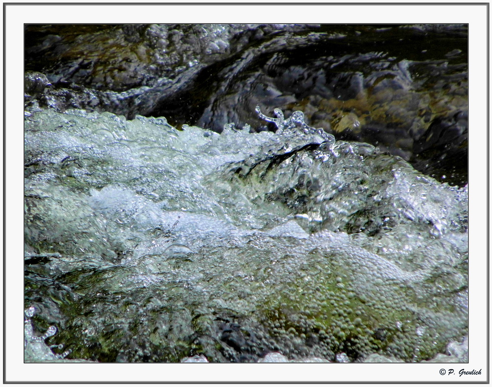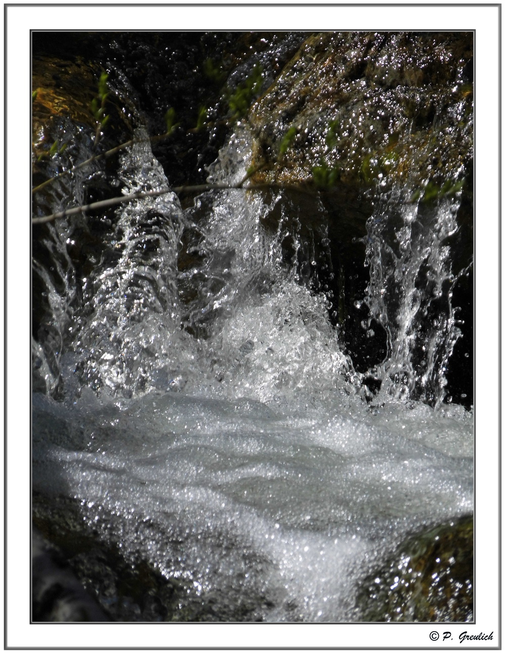 Einfach mal so in die Strömung eines Wildbachs hineinfotografiert. Beim Ansehen des Bildes fiel mir dann dieser wie ein Rodeoreiter geformte Wasserspritzer auf. Ein Reiter, der den rechten Arm erhoben hält, um sich im Gleichgewicht im Sattel zu halten.