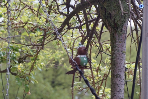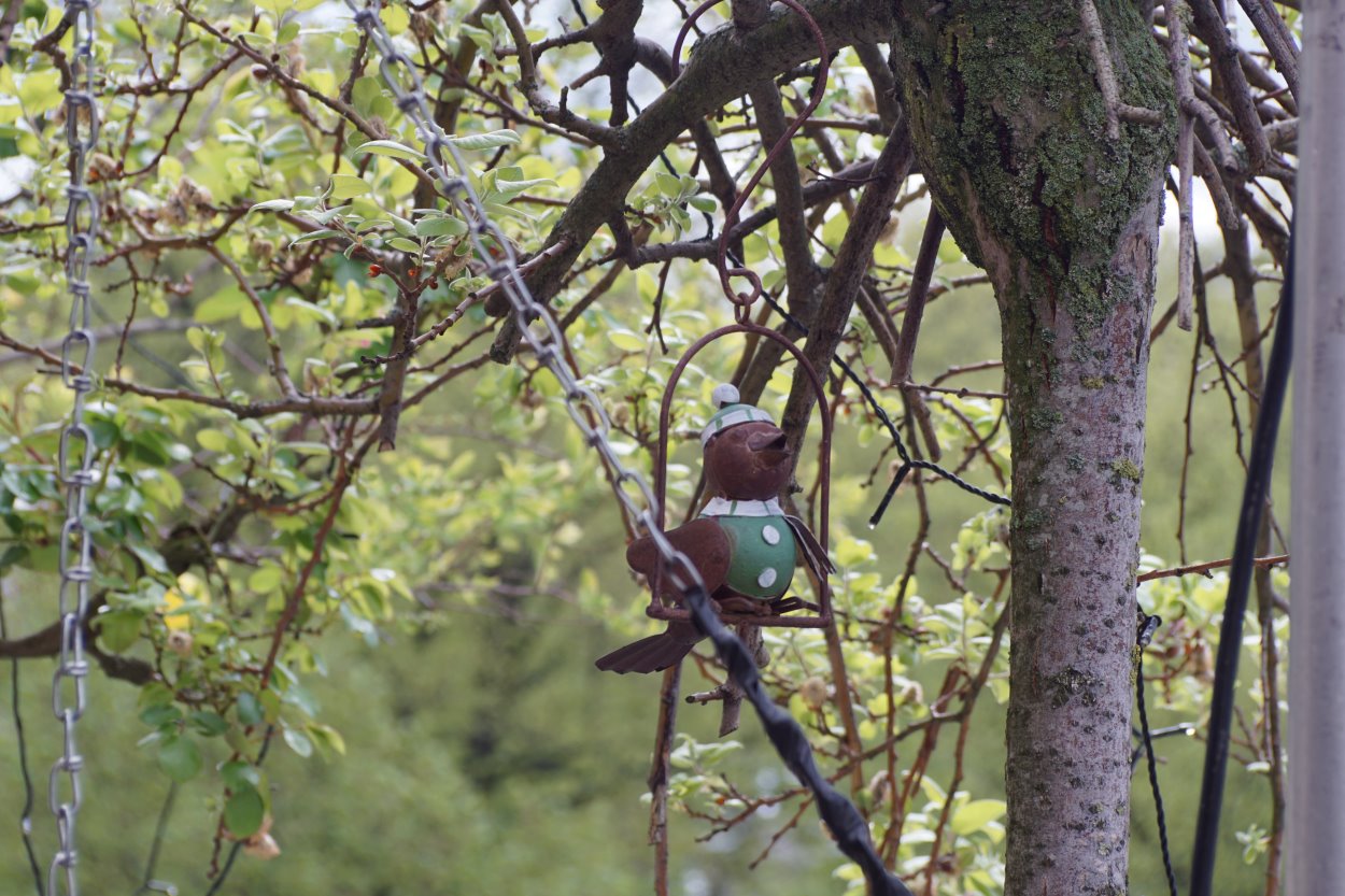 ca 2 Meter, fokussiert auf Vogel. Eigentlich weder vorn noch mittig noch hinten richtig scharf.