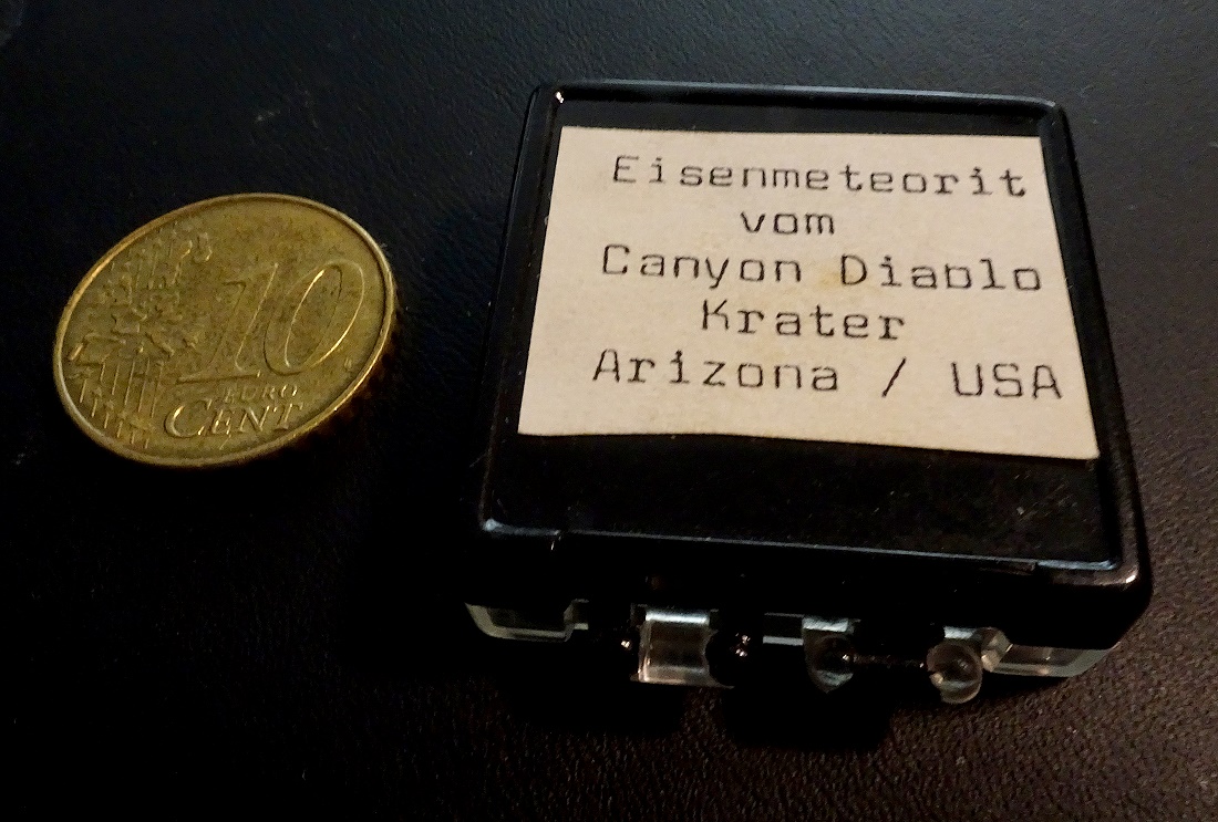 ich habe das Stück Meteorit mal von ca 35 Jahren in der Berliner Wilhelm Forster-Sternwarte erworben, Ich glaube es hat so um 30 DM gekostet. Der Einschlagkrater in den USA hat ein erhebliche Menge des Materials.