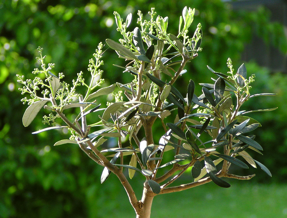 Willi:Der Ölbaum bemüht sich jeden Sommer mit vielen Blüten Früchte zu produzieren. Leider ist das Klima im Donautal zu kalt für den Baum aus dem Süden, denn die Oliven werden erst im Dezember reif und da gibt es bei uns schon die ersten Nachtfröste. Leider keine Olivenernte.