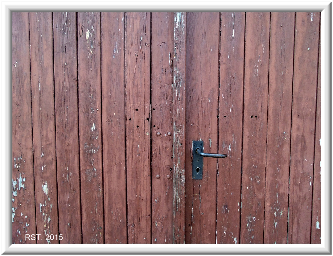 die Holztuer (das Holztor?) belegt das nur dem Hauseigentümer erkenntliche handwerkliche Wirken eben an dem Konstrukt. Lange funktionellen Bestand scheinen die gebohrten Löcher nicht gehabt zu haben (ehemaliges Vorhängeschloß?) ...