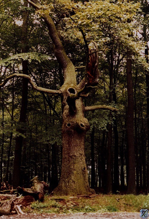 Ein altes Bild hab ich für Euch ausgegraben.Es stammt aus dem Jahre 1983. Damals hatte ich noch eine Vorliebe für unheimliche Orte. Wenn ich es mir recht überlege, interessieren mich solche Ecken eigentlich immer noch. Hier seht Ihr eine viele hundert Jahre alte Eiche in einem alten Wald im westfälischen Münsterland. Der Wald heisst Davert und um dieses Gebiet ranken sich etliche Sagen und Legenden.