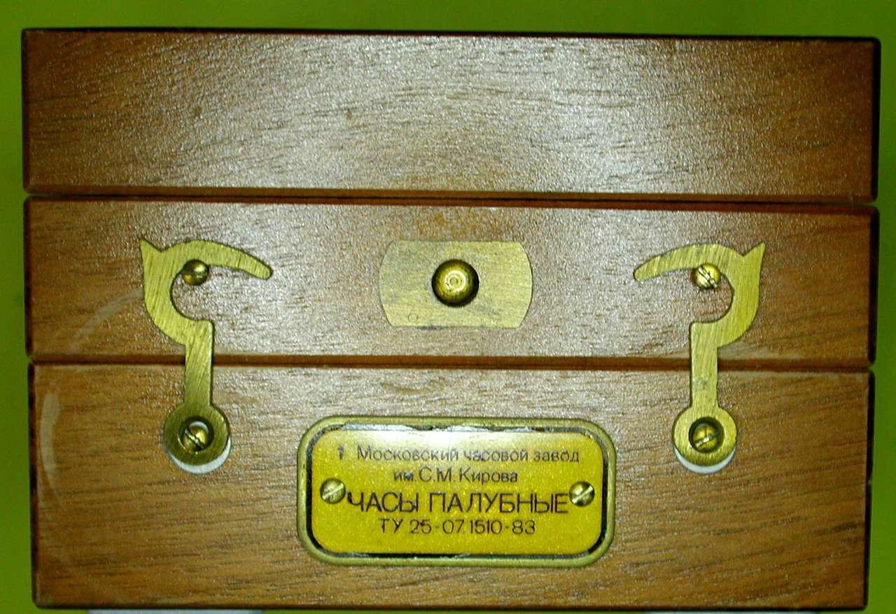 Sie ruht wohlgeschützt in einem dekorativen Holzkästchen mit Clipverschluß, wobei die Uhr durch zwei Drehriegel gegen das Entnehmen (oder Herausfallen) gesichert ist: