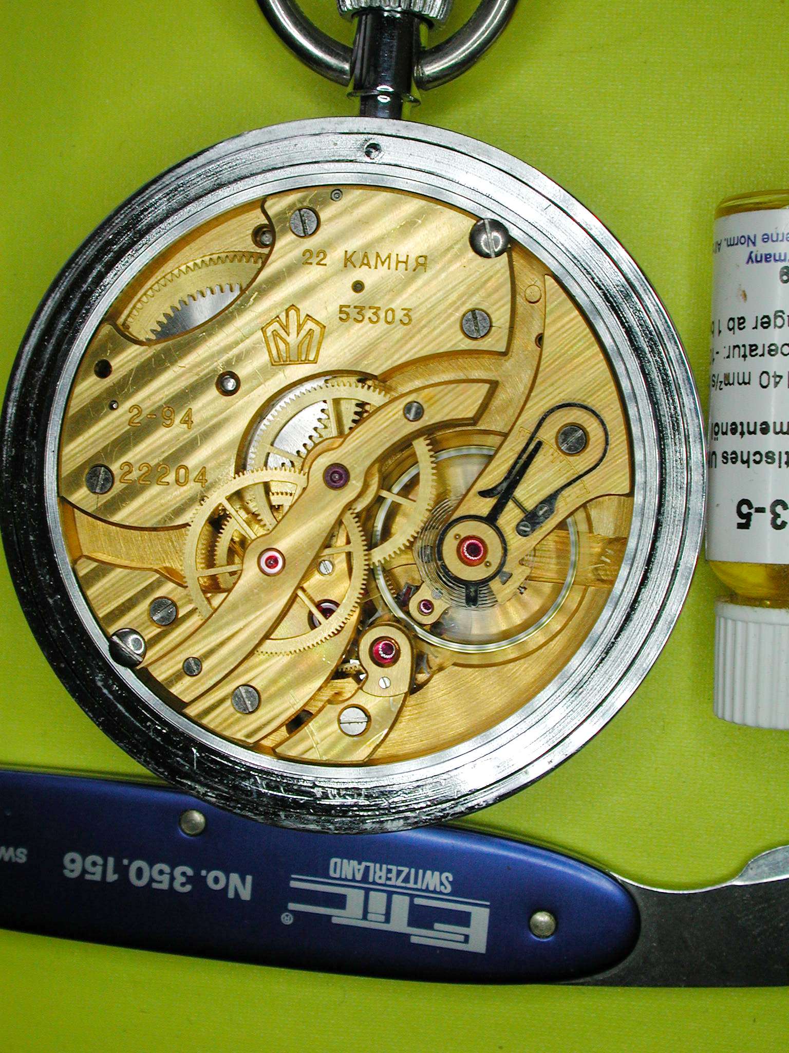 Ich glaube, die Russen und vor ihnen die Sowjets haben die alten Fertigungsmaschinen und wohl auch Halbzeuge der Schweizer aufgekauft, von unirdisch guten Marken wie Valjoux, aber für den allgemeinen Verkauf als Souvenir oder Devisenbringer an Consumer im Export nicht so exakt reguliert ausgeliefert, wie das die Schweizer (um zu Recht das zehnfache Geld einzufahren) gemacht haben. Ganz allgemeine Bemerkung: Lageempfindlichkeit lässt sich ebenfalls bei passablen Uhrwerken, viel billigeren als diesem hier, weitgehend ausschließen. Dafür hat beispielsweise, glaube ich, Patek Philippe die Schräubskens ringsrum auf der Unruh. Aber das selber zu machen, den Ehrgeiz hatte ich nie.