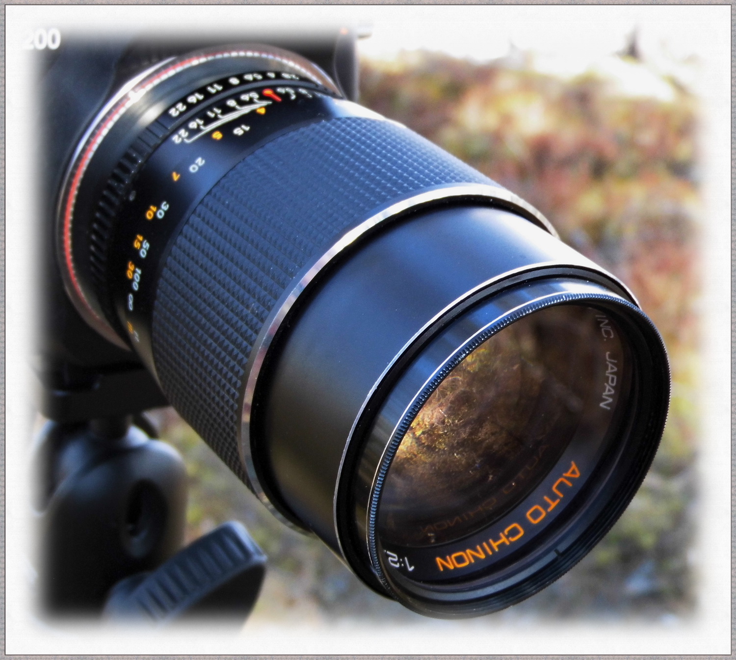 ein Auto Chinon 135mm 1:2.8 ist es diesmal bei mir. M42 und mittels Adapter an eine Sony Alpha A200 angeschlossen. Das Objektiv ist trotz Metallbauweise recht leicht und es lässt sich gut damit hantieren. Es besitzt eine eingebaute, ausziehbare Sonnenblende.