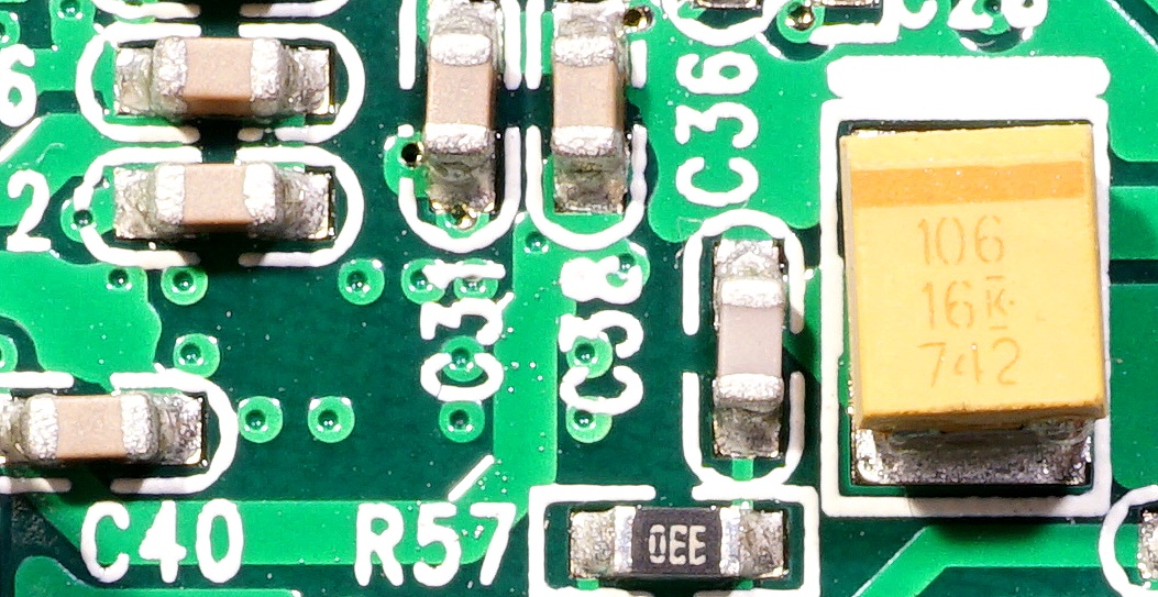 Die Bauteile-Bestückung ist in SMD-Technik ausgeführt. Die Verlötung dieser Bauteile erfolgt maschinell. SMD-Bauteile haben keine Drahtanschlüsse mehr, sondern nur Lötkontaktzonen.