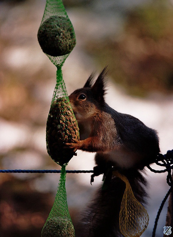 Eichelhäher, Eichhörnchen, Füchse, Marder, Dachse etc. sind wohl die Standarteinwohner der Wälder und Waldrandgebiete in Mittel- bis Nordeuropa. Wir bekommen sie hier ums Haus herum im Winter öfters zu sehen, denn am Vogelfutterspender bedienen sich so einige echte und auch unechte, komische Vögel. Und wer keine Sonnenblumenkerne, Erdnüsse usw. frisst, der nimmt sich was von den Resten aus der Küche, die wir rauslegen.