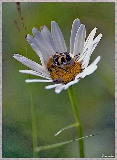 Hier mal was aus dem Sommer. Eines Tages kam mir dieser Pinselkäfer vor die Linse. Das Bild ist ein paar Jahre alt, aber sicher nicht mehr als vier oder fünf. Man könnte sagen, dass er sich so richtig reinkniete in seine Mahlzeit.