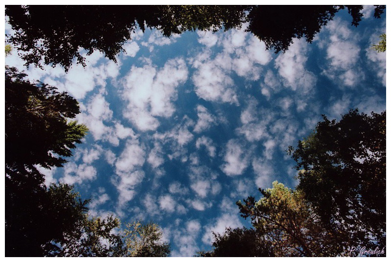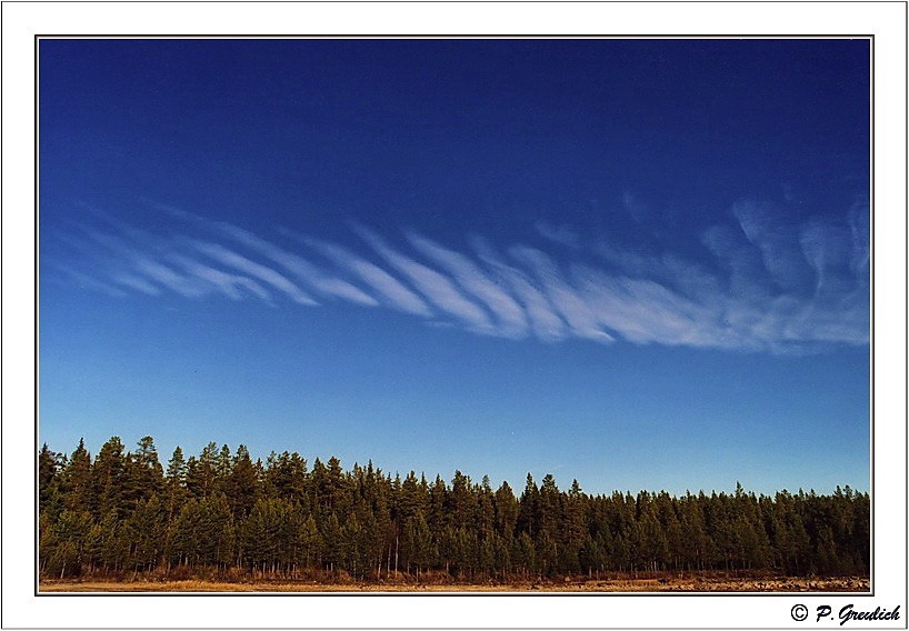Dein getigerter Himmel verhält sich erstaunlich parallel zu den Baumkronen,macht praktisch die leichte Kurve mit.