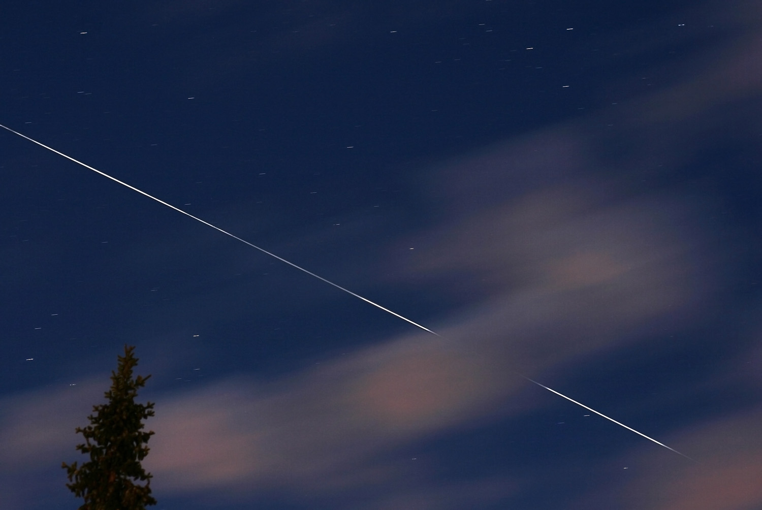 Wolken können auch bei Nacht ganz interessante Bildeffekte ergeben. Besonders wenn noch die Raumstation ISS über den Himmel zieht.