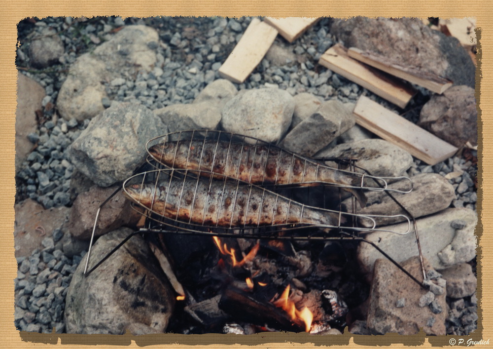 Na ja, sagen wir mal fast, denn ein wenig Eisen ist ja auch dabei. Diesmal an meiner eigenen Feuerstelle auf unserem Grundstück. Das muss etwa 1994 gewesen sein. Kamera wie so oft zwischen Ende der Achtziger und Anfang 2000 eine Nikon F401 mit Normalzoom. Film vermutlich ein 200 ASA Farbnegativ Fuji.