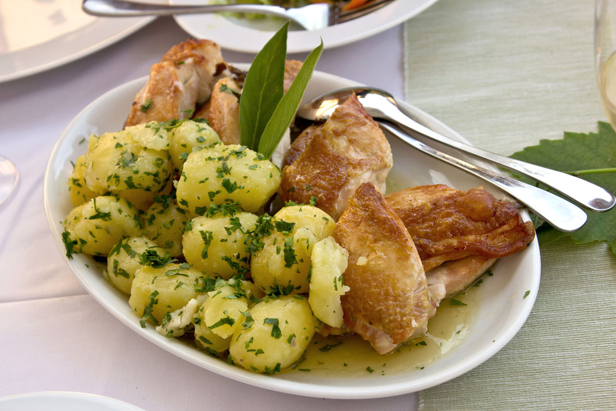 Hühnchen mit Petersilie-Erdäpfeln (ihr sagt Kartoffeln dazu)