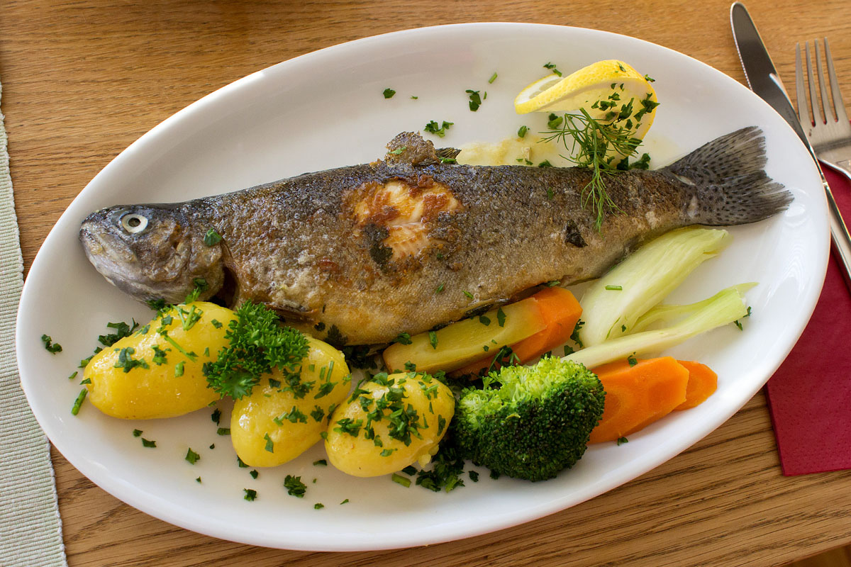Eine Forelle frisch aus dem Wasser