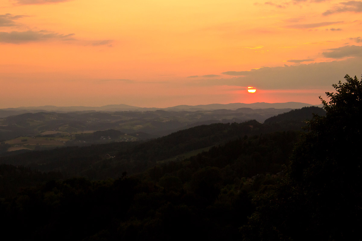 Wenn die Sonne über dem Donautal untergeht machen wir uns wieder satt auf den Heimweg durch den Wald.