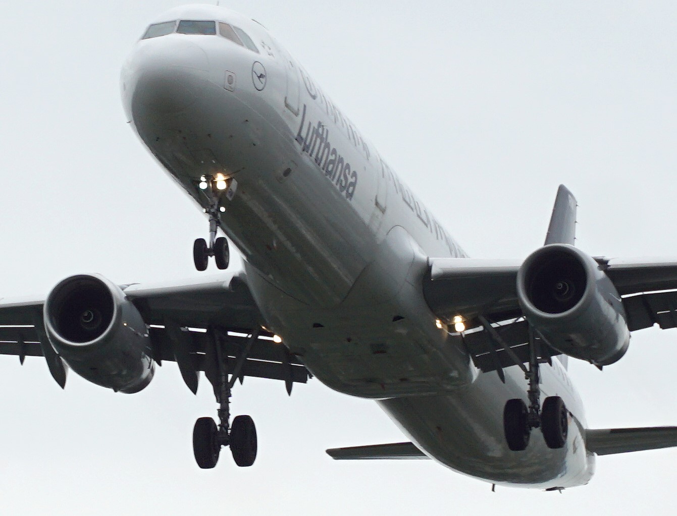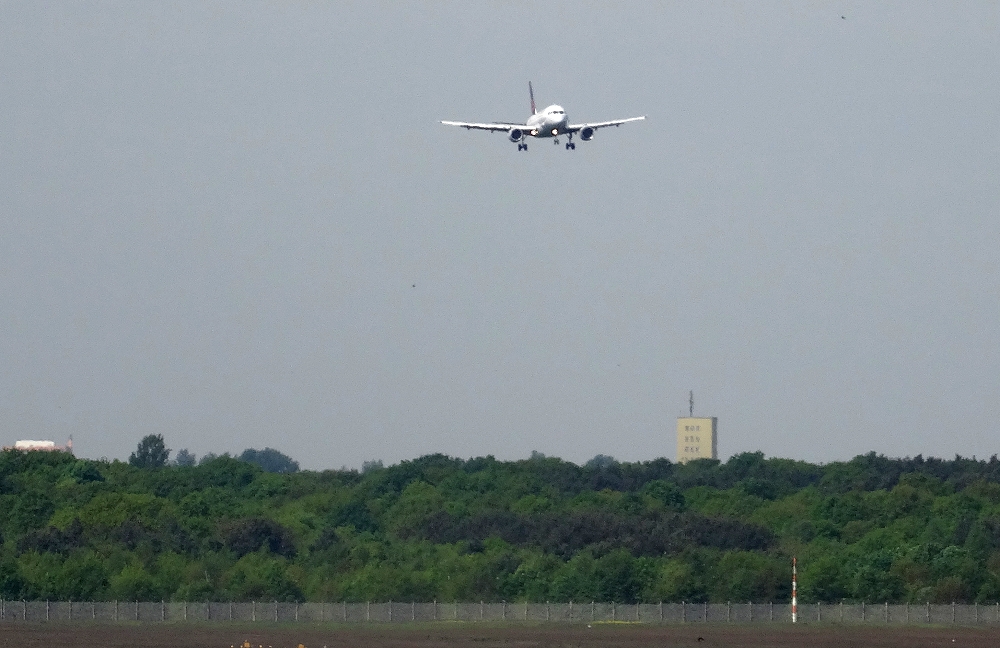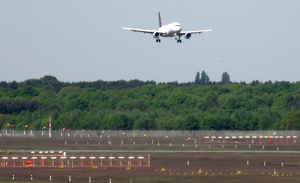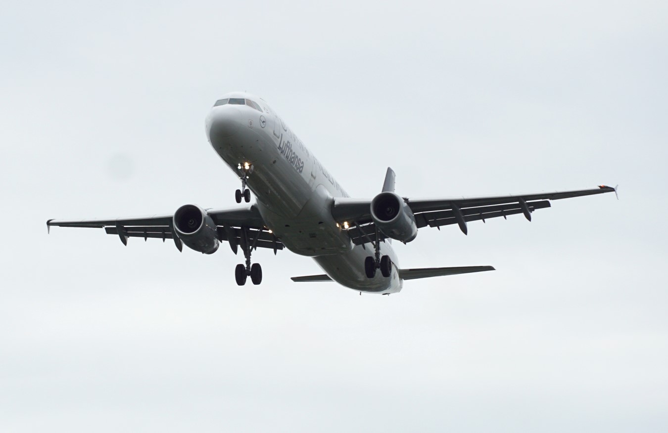 Stattdessen aus "Verzweiflung" eine Aufnahme einer reinkommenden Lufthansa-Maschine bei bewölktem Himmel.