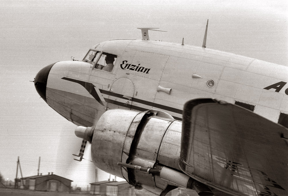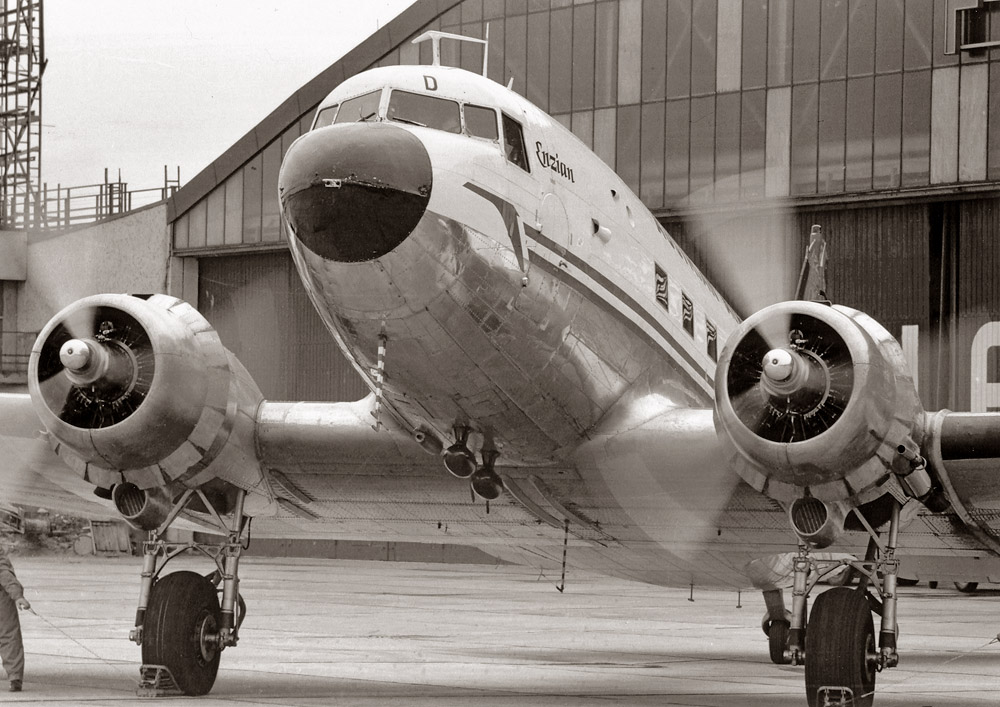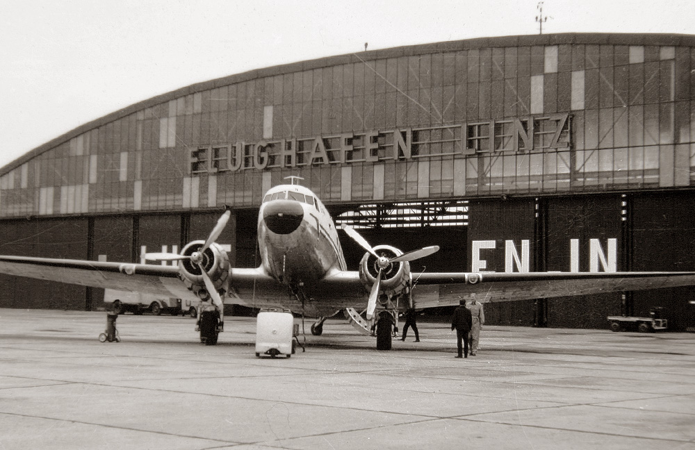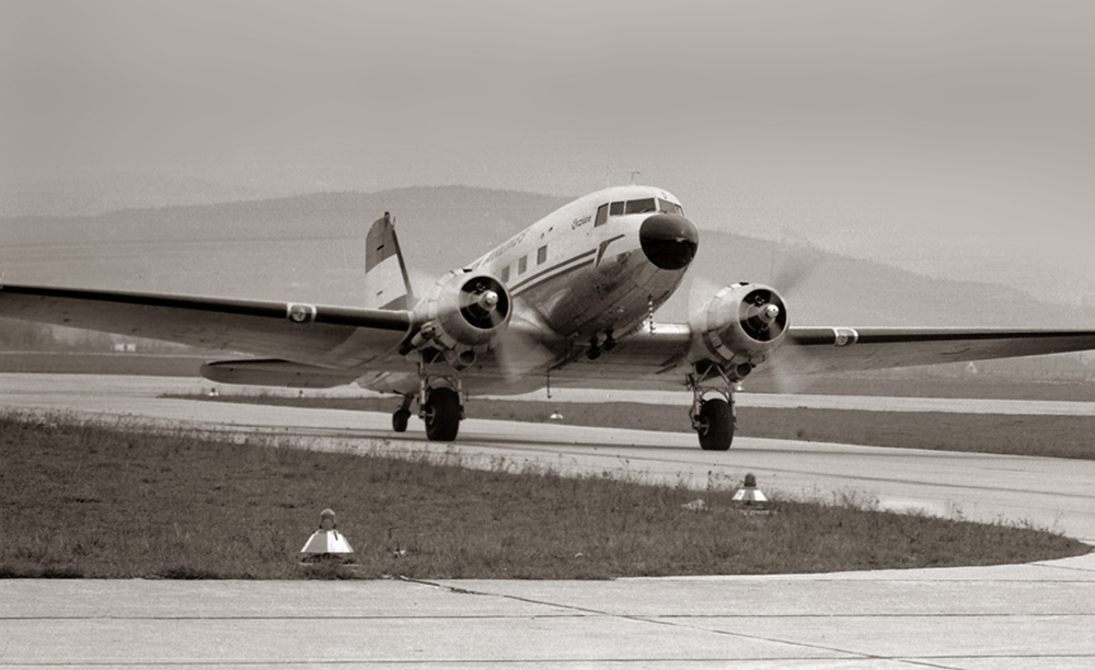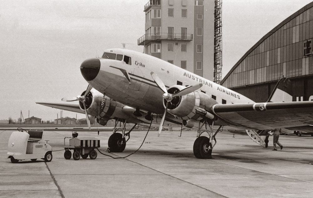 Willi:...Flughafen Linz 1965: Die Flugzeuge vom Typ DC3 flogen die Strecke Wien - Linz - Salzburg