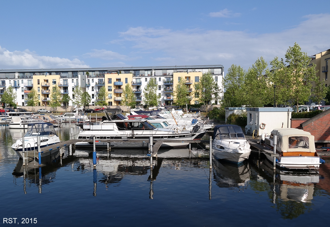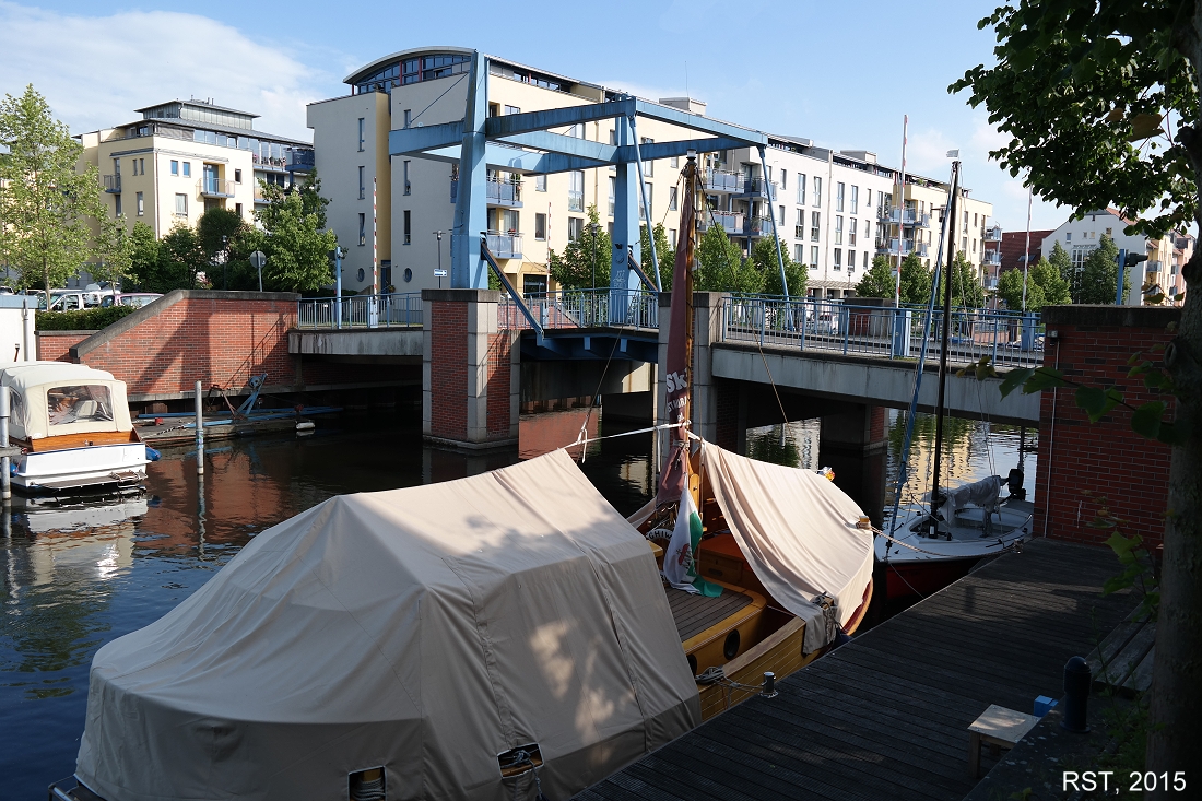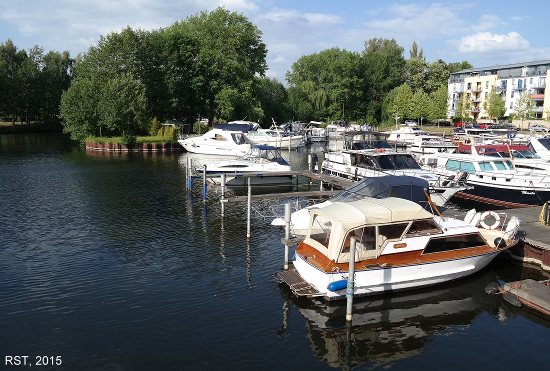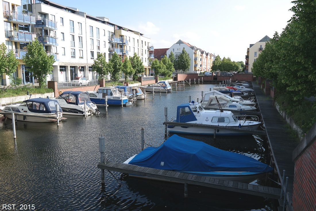 dicht bei Berlin (Hennigsdorf) liegt die folgende Örtlichkeit am Niederneuendorfer Kanal, die Wohn-Viertel, einen kleinen Hafen und eine Marina verbindet und eine interessante Kombination bietet.