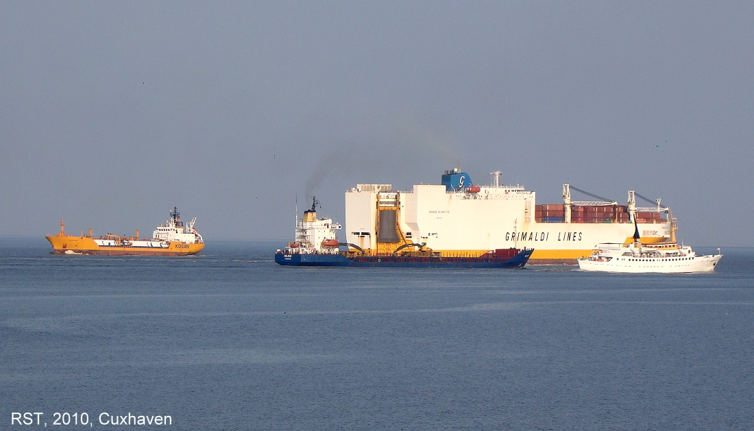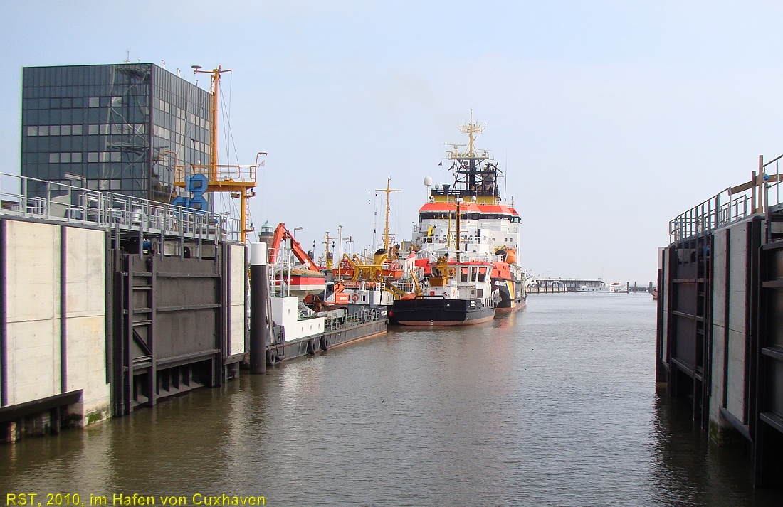 p.s. Hier der Link zur einer Life-Video-WEB-Cam im Hafen von Cuxhaven: http://www.cuxcam.de/cams.php?cam=8 Die WEB-Cam befindet sich auf dem Radar-Turm mit Schiffsansagedienst an der "alten Liebe", Blickrichtung NW. Bei Marinetraffic.com kann man dan den jeweiligen Schiffsnamen aif dem WEB-Cam-Video ermitteln.