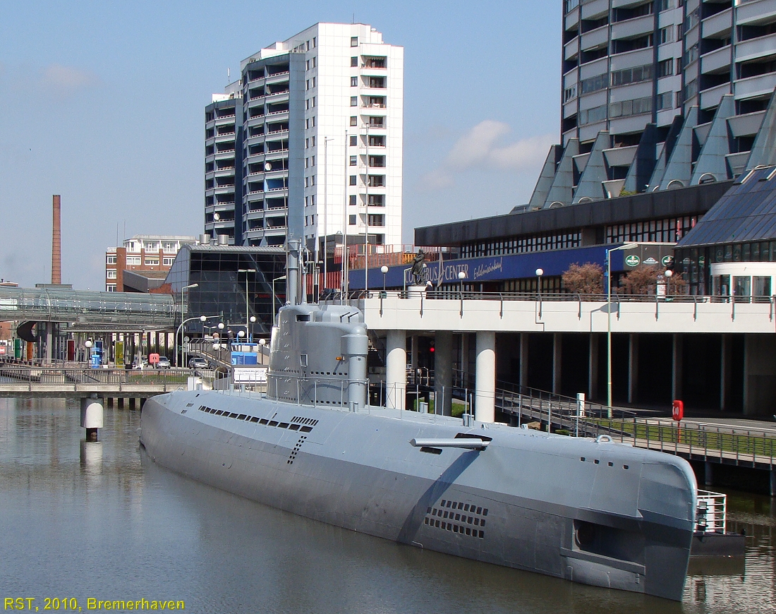 Altes deutschen U-Boot aus dem 2. Weltkrieg (U2540) und später nach Versenkung und Wiederbergung der Bundesmarine. Es gehört allerdings nicht zum "schwimmenden Inventar" des Deutschen Schiffahrtsmuseum in Bremerhaven, sondern einem gesonderten Verein.: Technikmuseum U-Boot Wilhelm Bauer e.V. http://www.u-boot-wilhelm-bauer.de/de/