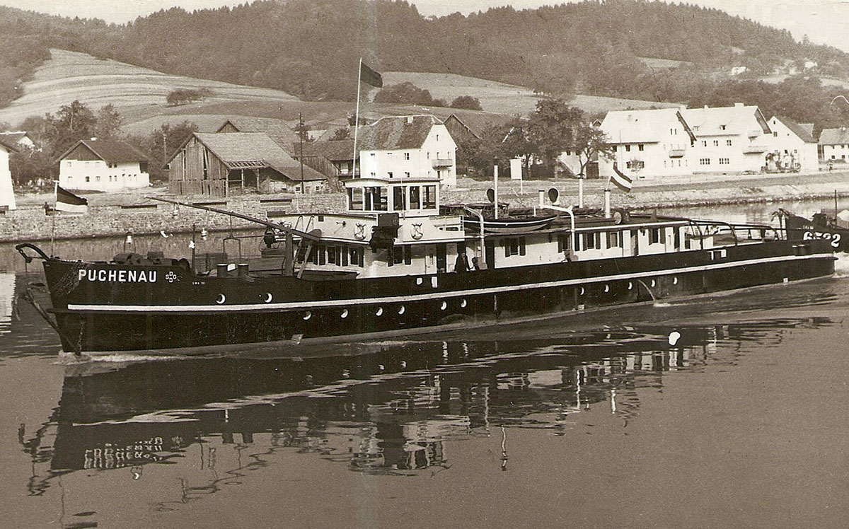 Schleppschiff MS Puchenau, Länge 46 m, Breite 7,2 m, Bj. 1942, wurde nach meinem Wohnort benannt. Das Schiff wurde 1978 verkauft und in Victorovac umbenannt, brannte 1998 in Mostar völlig aus und wurde verschrottet. Aufnahmedaten weiß ich leider nicht mehr.
