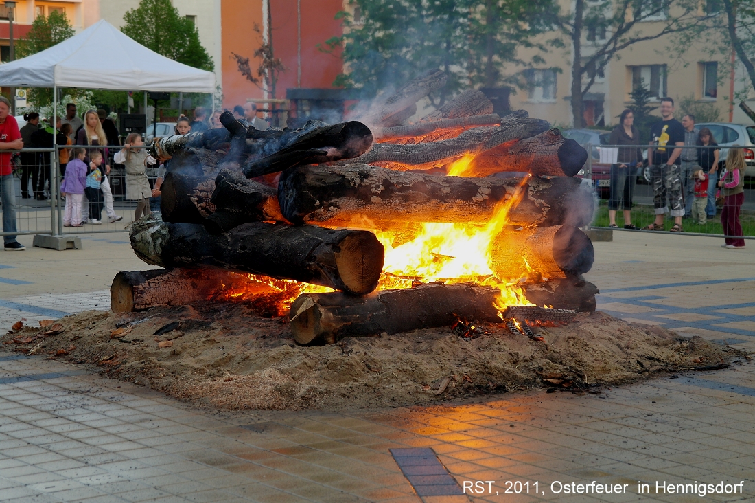 in Hennigsdorf am nördlichen Stadtrand von Berlin traute man sich 2011 in einer Neubausiedlung ein Osterfeuer zu entfachen. Vorsichtig wie man war, stand auch die örtliche Feuerwehr bereit: