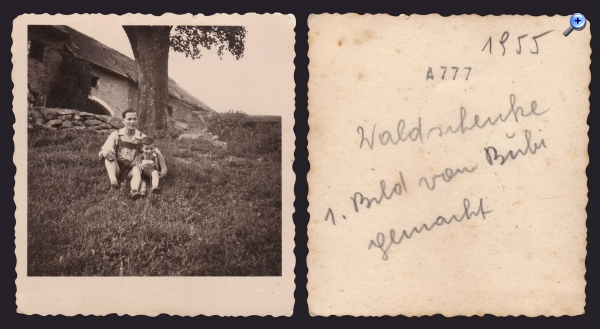 Durch Zufall fand ich im Keller in einer Schachtel mit alten Schriftstücken, die mir meine Mutter hinterlassen hat, ein Foto das meinen Vater und meinen Bruder im Jahr 1955 zeigt. Auf der Rückseite hat meine Mutter vermerkt: Erstes Bild von Bubi gemacht Ich fotografiere also schon seit 60 Jahren
