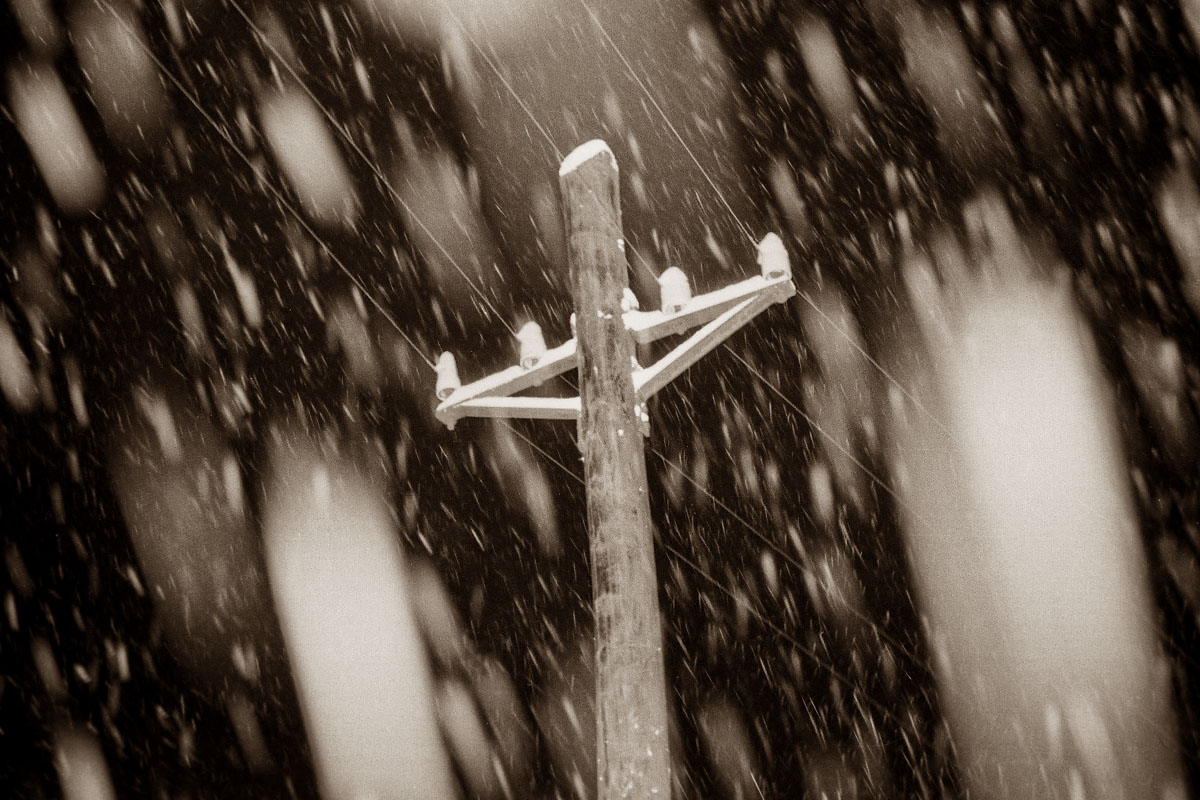 Ja, die Schneeflocken sind leicht angeblitzt. Durch die kurze Leuchtdauer des E-Blitzes werden die Flocken zu bewegungslosen Kugeln. Deshalb auch die Bilder mit Birnchenblitz im vorigen Beitrag, um Bewegung ins Bild zu bringen.