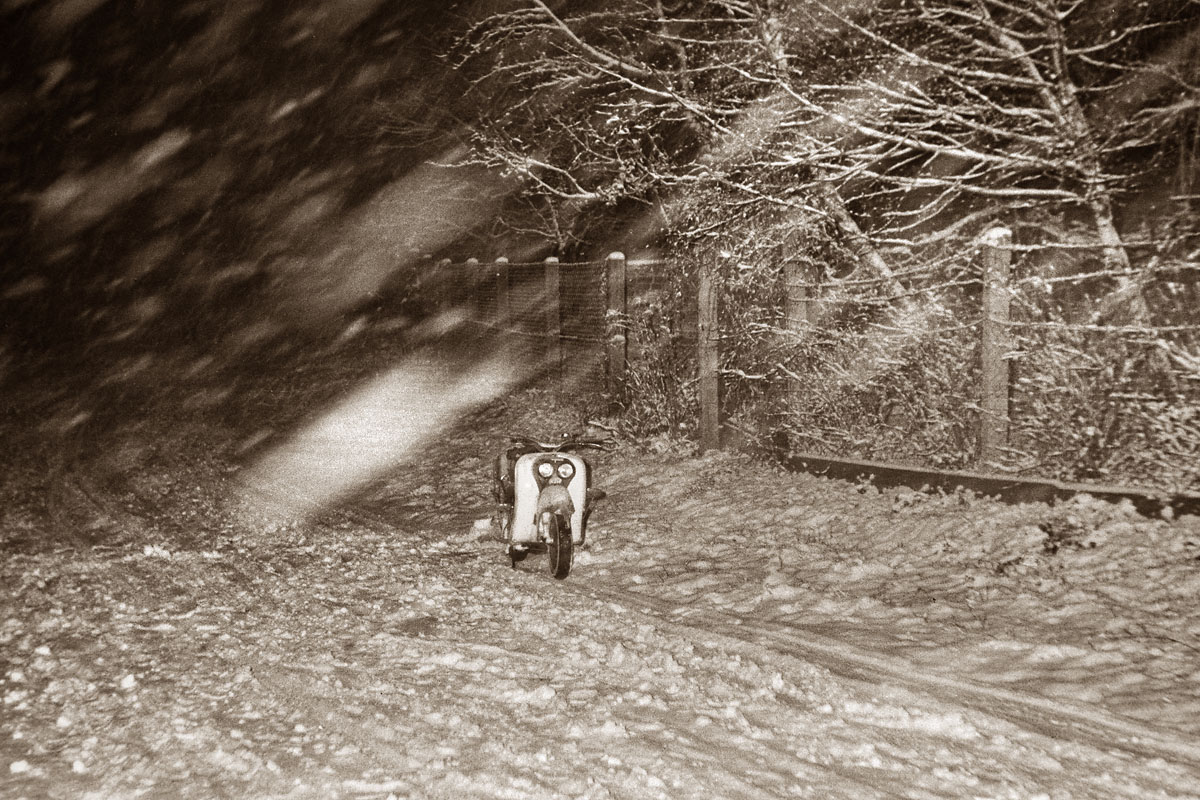Ich war 1965 auch im Winter mit meinem KTM Ponny Moped auf Motivsuche Fotos: Praktica IV, Jena T 2,8 / 50 mm, Ilford FP3, 1965