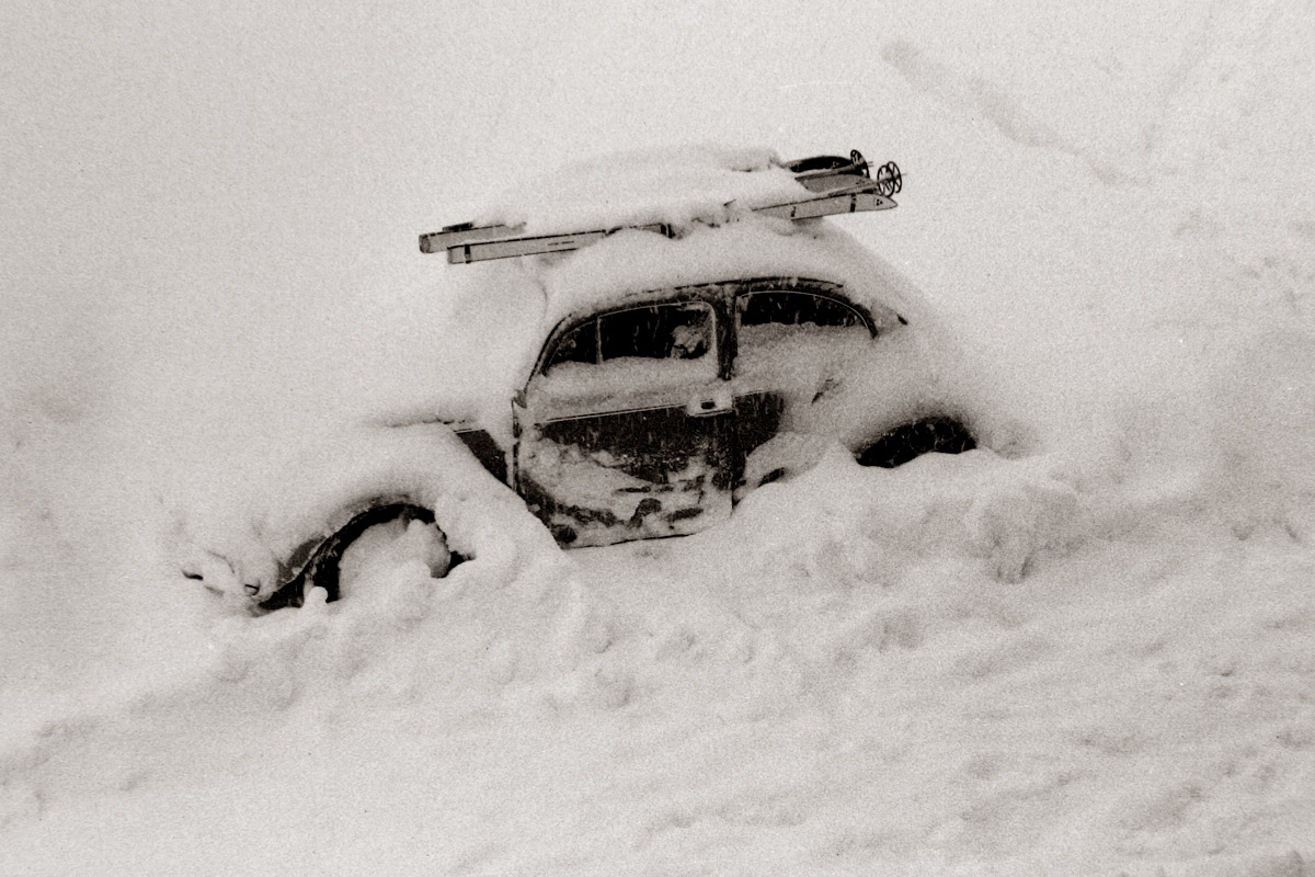 Zum Jahreswechsel noch einige Bilder vom Neujahrstag 1963 aus Spital am Pyhrn im Oberösterreichischen Alpenvorland. Hätte ein Schiwochenende werden sollen. Aber bei mehr als einen Meter Neuschnee ... VW Käfer im Tiefschnee