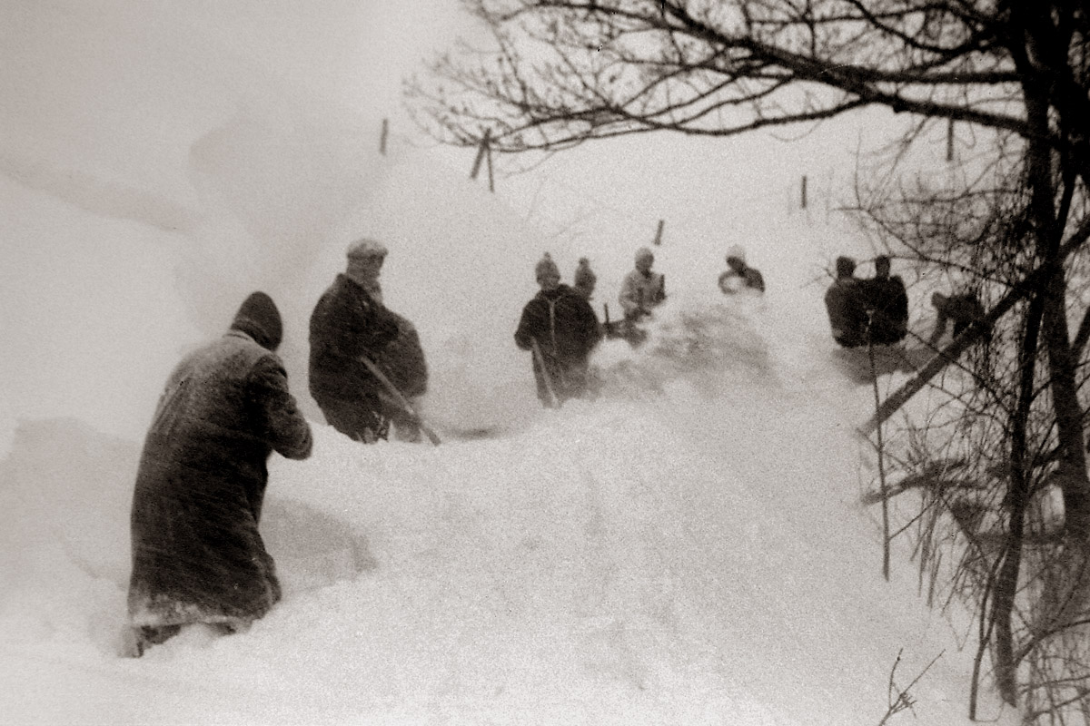 Schaufelkommando am Weg zur Schihütte