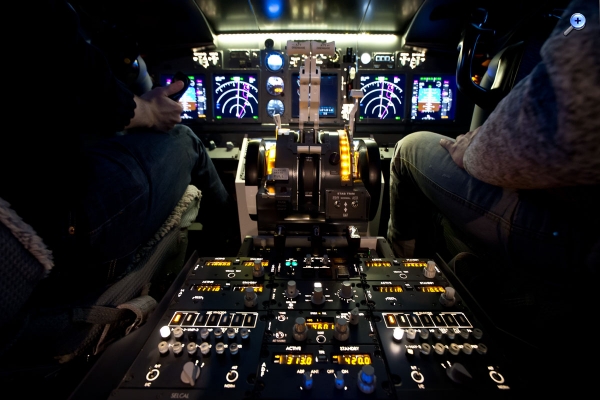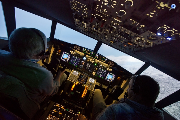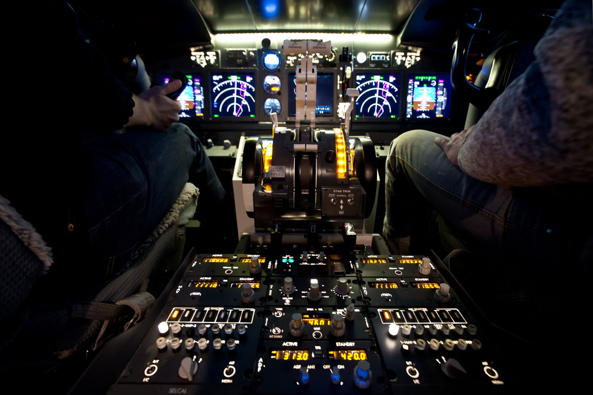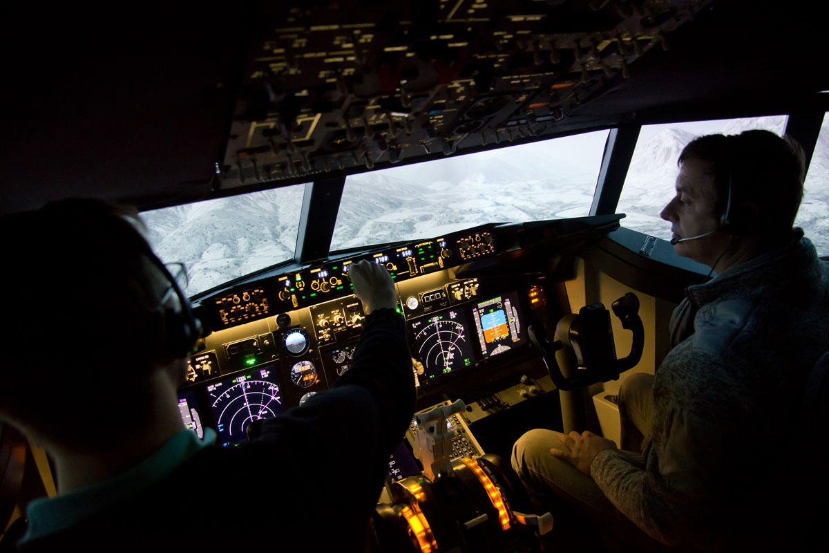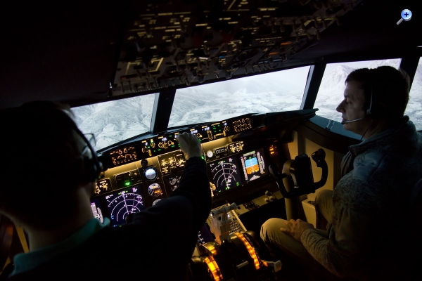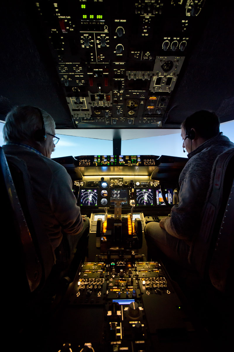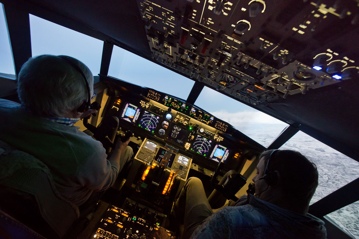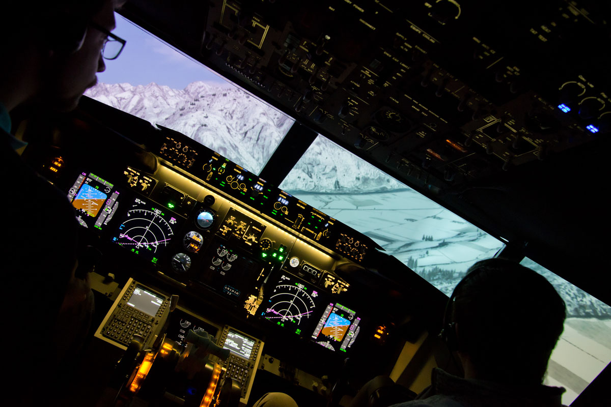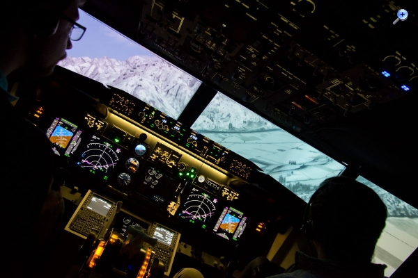 Ein eigener Simulatorflug über die Alpen als Geburtstagsgeschenk! Da muss natürlich die Kamera dabei sein. Im engen Cockpit war das 14 mm Ultraweitwinkel an der Vollformat Nikon D 600 das ideale Objektiv. Dazu wenig Licht und starke Heligkeitsunterschiede: Das RAW-Format hats möglich gemacht.