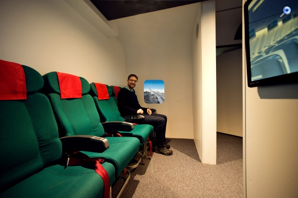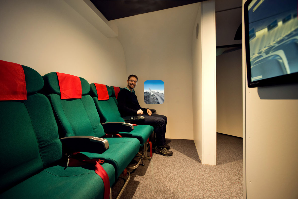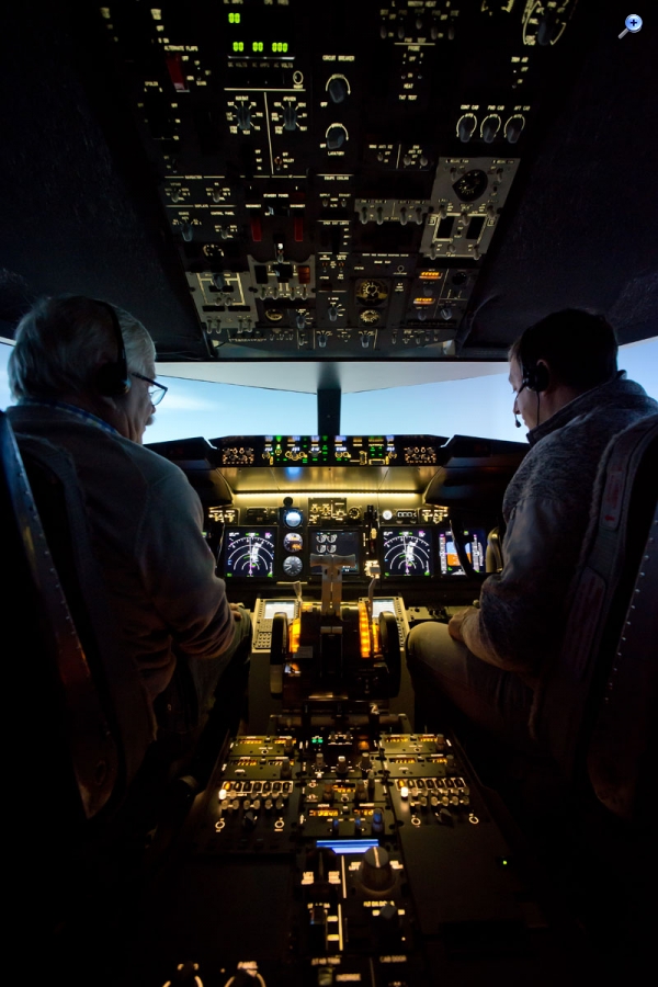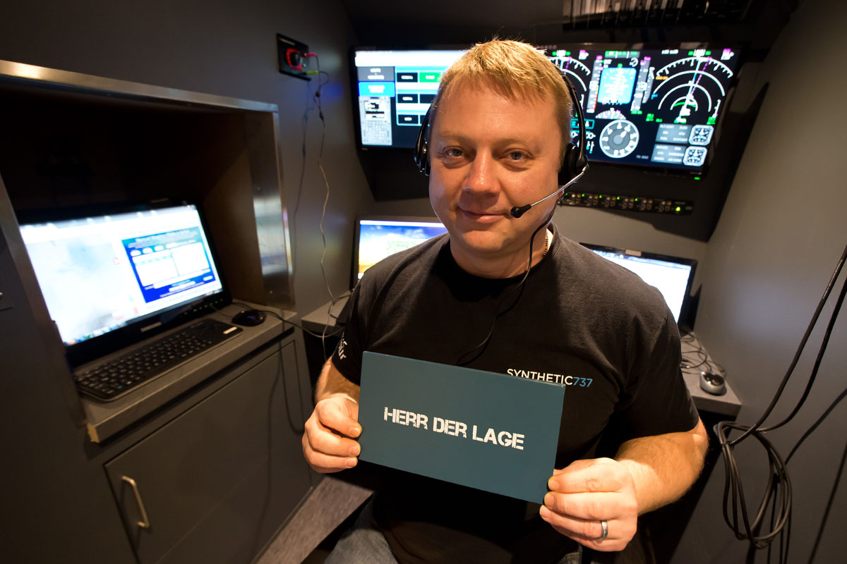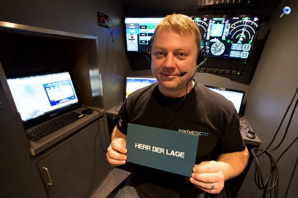 Es gibt zwar hinter dem Sim-Cockpit einen Passagierbereich mit 6 Originalsitzen und Wingview in den Fensterbildschirmen, aber Stewardessen hab ich nicht gesehen. Den Service macht der Betreiber des Simulators persönlich. Stewardessen gibt vermutlich nur im Premiumpaket