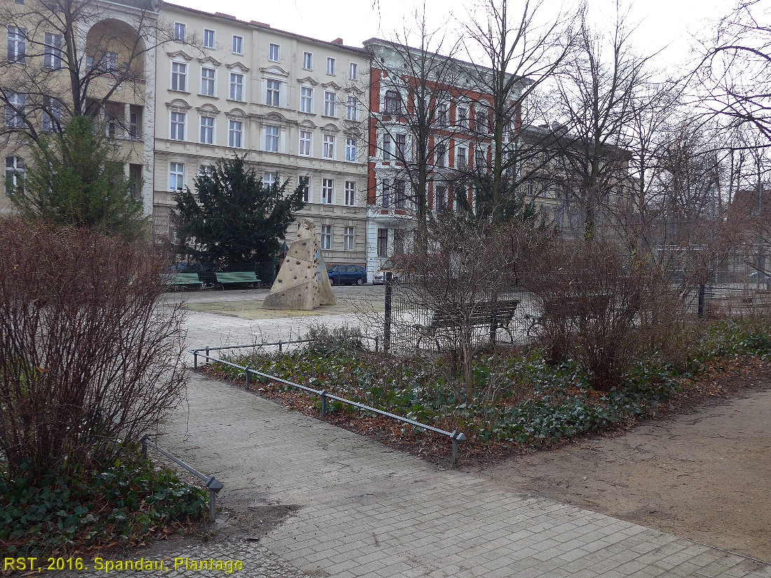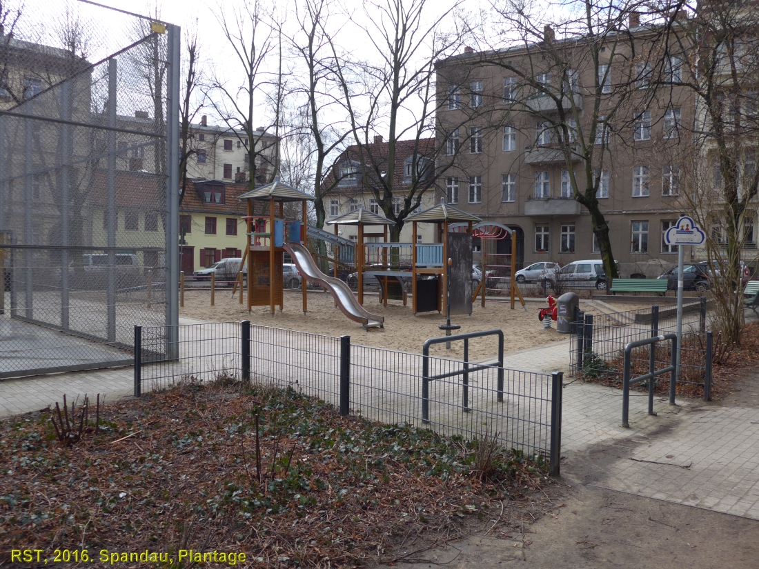 Spandau ist ein Stadtteil von Berlin und sogar älter als die Bundeshauptstadt selbst. Spandau liegt an der Havel, wo die Spree zufließt. Unweit von dieser Stelle liegt etwas verborgen der kleine rechteckige Platz "Plantage" (Pflanzung). Der Platz geht zurück auf 1751, er war damals ein Paradeplatz für die Spandauer Garnison. Benannt als Plantage wurde er erst später nach Rand-Bepflanzung mit Linden.