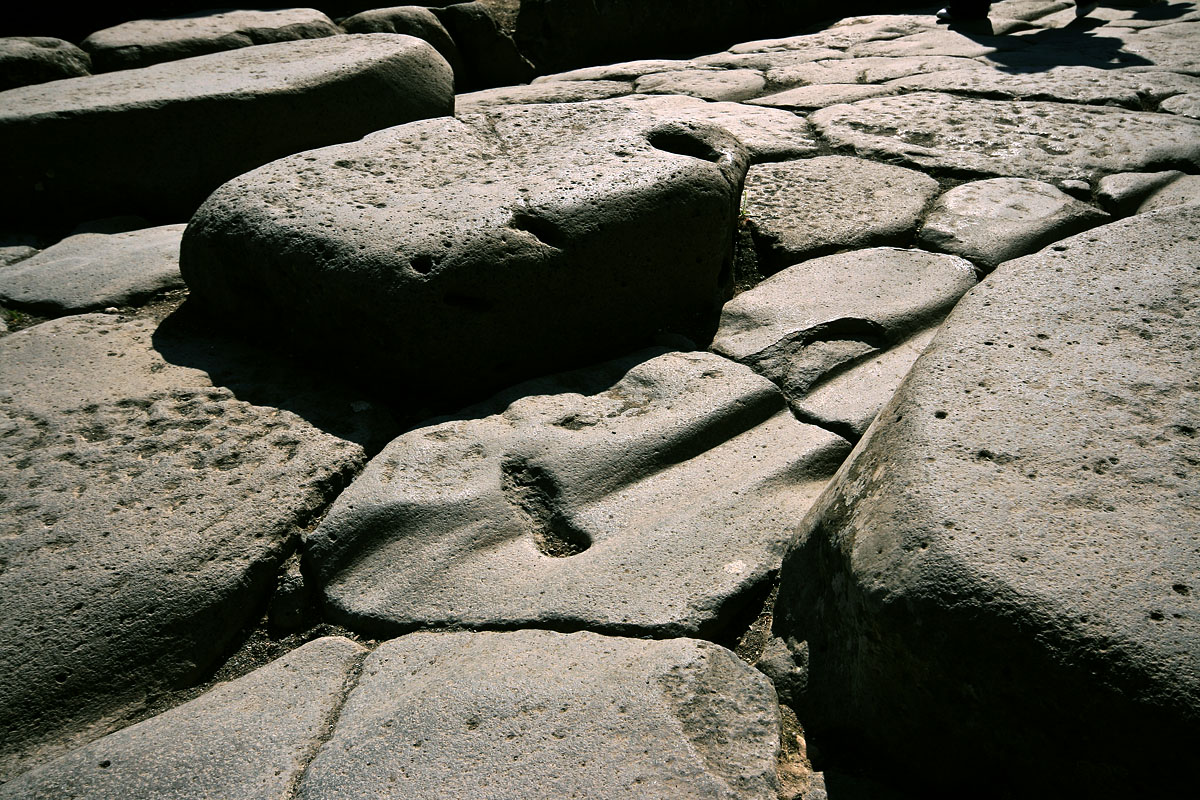 Hier das Ergebnis: Die Räder der Römischen Wagen haben deutliche Spuren im Lavagestein hinterlassen