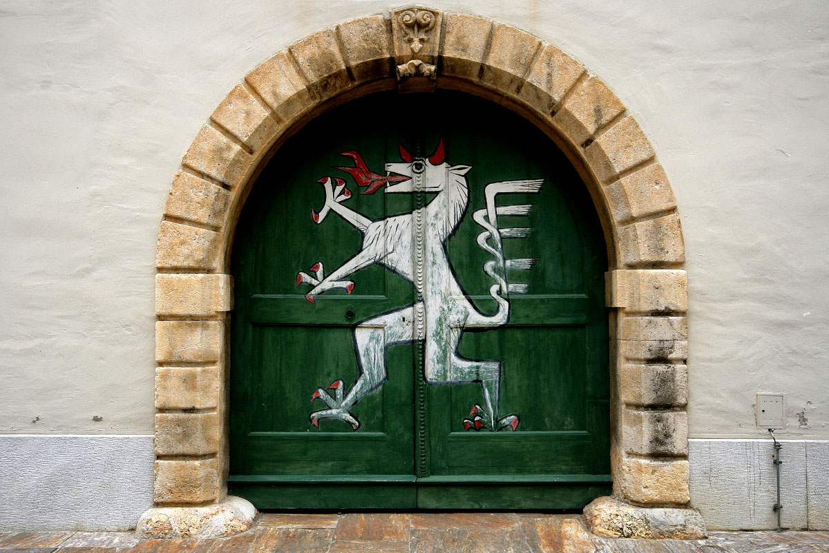 Der Zugang zum Landhaus mit dem Steirischen Panther